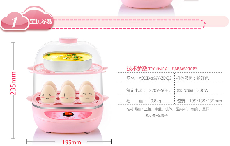 商品名称:优益(Yoice) 双层煮蛋器 蒸蛋蒸菜消毒器 自动断电防干烧 实用小家电礼品