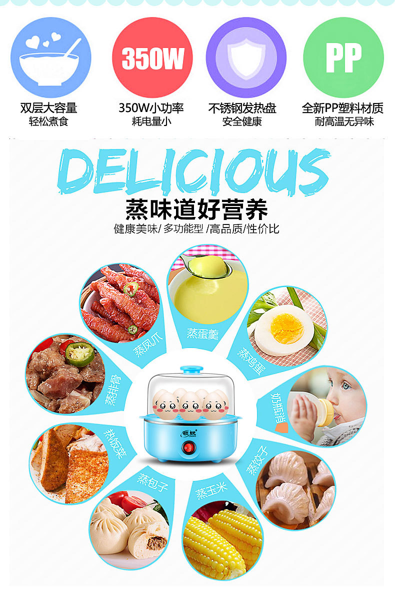 商品名称:双层蒸蛋器多功能小型蒸鸡蛋羹煮蛋锅 促销礼品