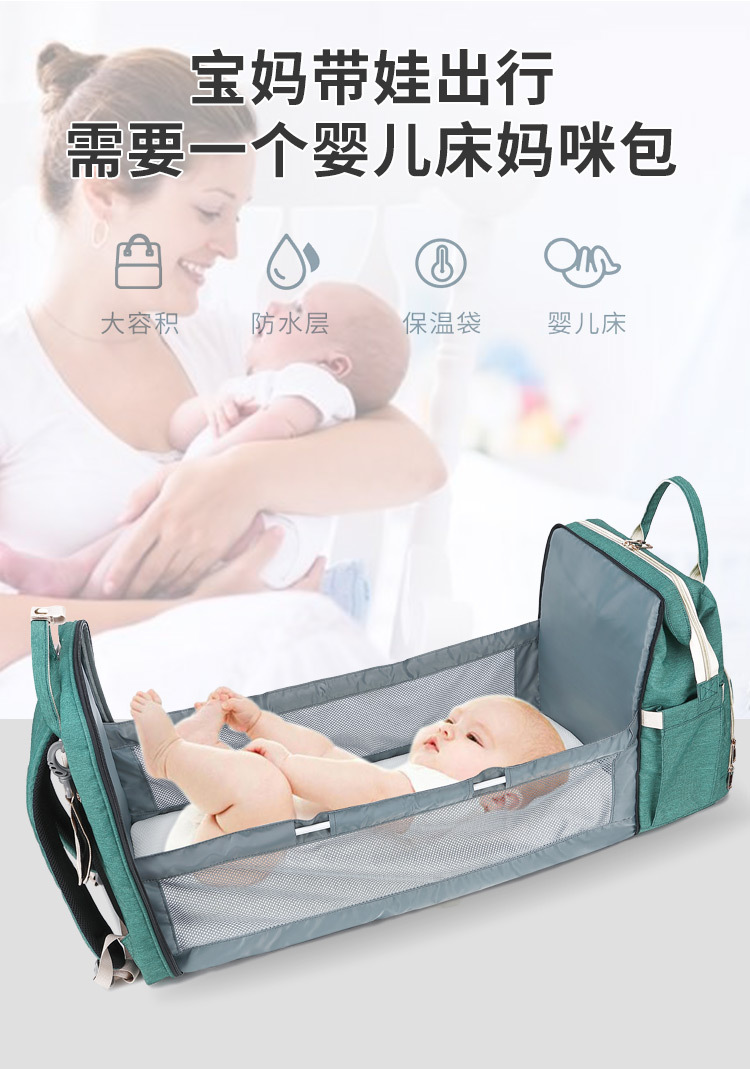 商品名称:创意可折叠婴儿床妈咪包 多功能便携手提母婴包 婴儿礼品送什么好