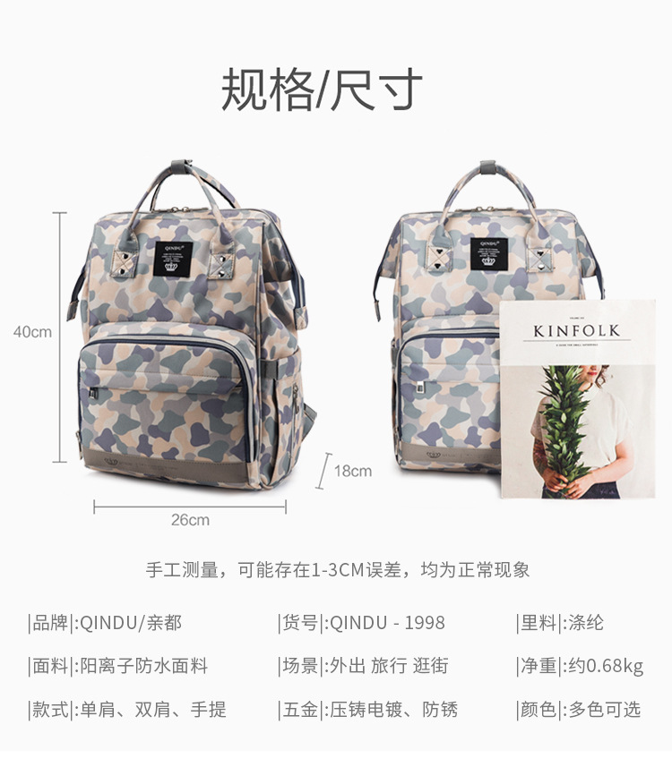 商品名称:【时尚迷彩】时尚经典多功能母婴包 妈咪包 外出双肩包 孕婴创意礼品私人定制