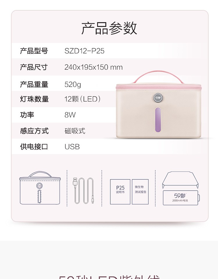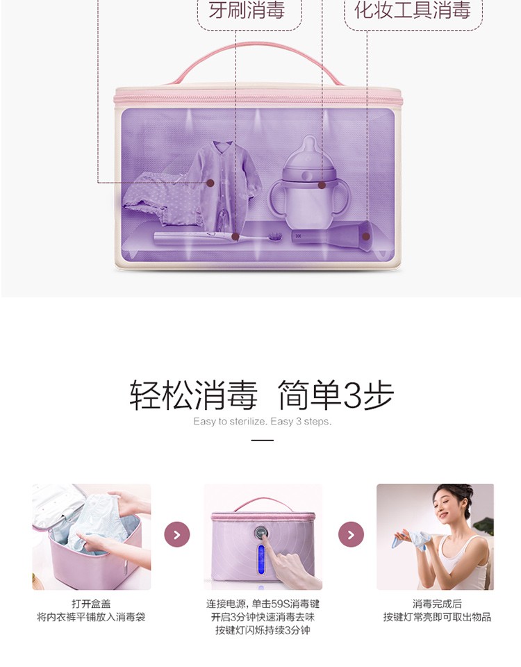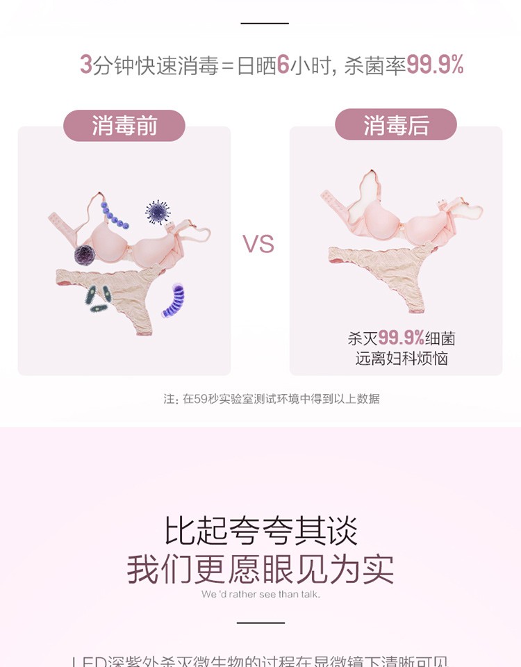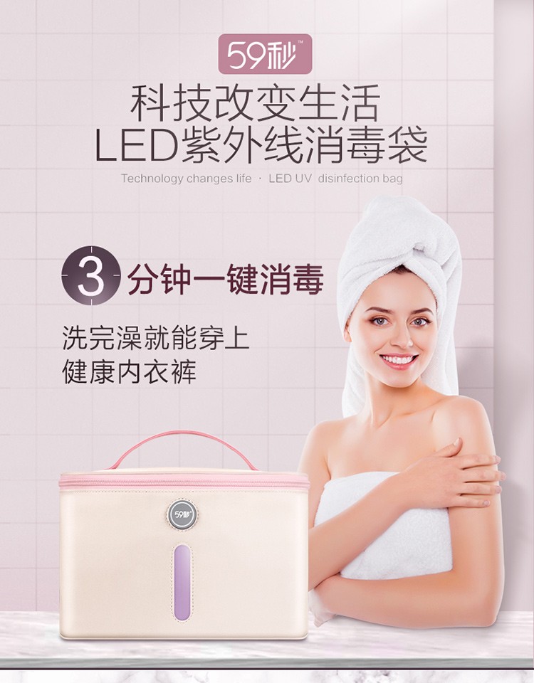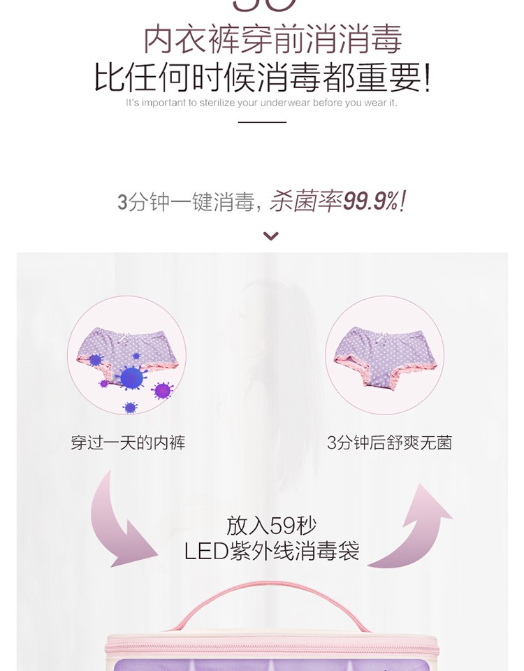 商品名称:59秒 紫外线LED内衣消毒机消毒袋毛巾内衣裤袜子杀菌收纳箱 女人送什么礼品好?
