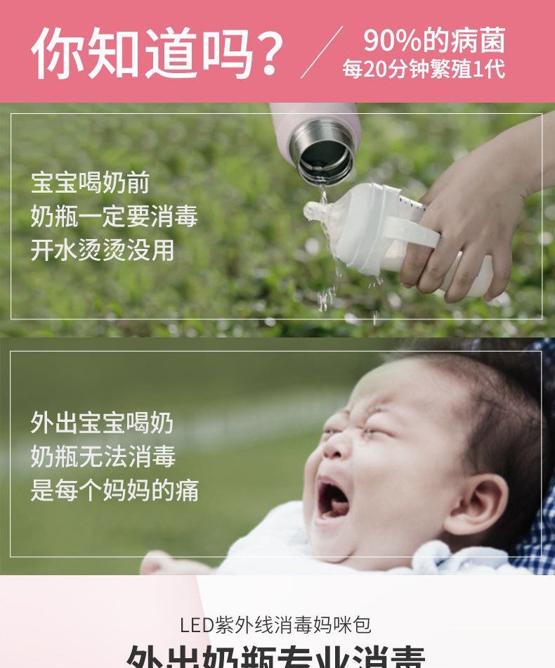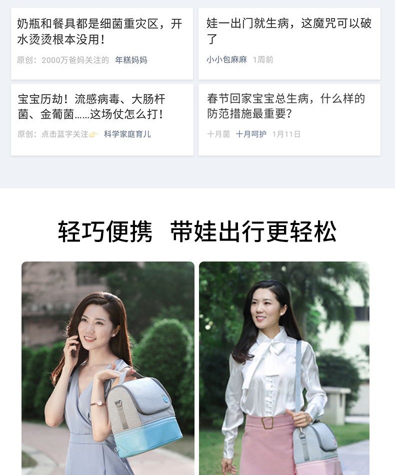 59秒 可以背着走的“消毒柜”LED紫外线消毒妈咪包消毒储奶收纳三合一 500元左右礼品