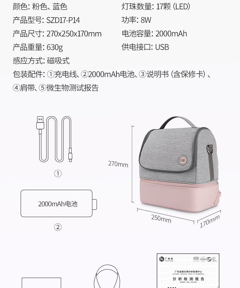 商品名称:59秒 可以背着走的“消毒柜”LED紫外线消毒妈咪包消毒储奶收纳三合一 500元左右礼品