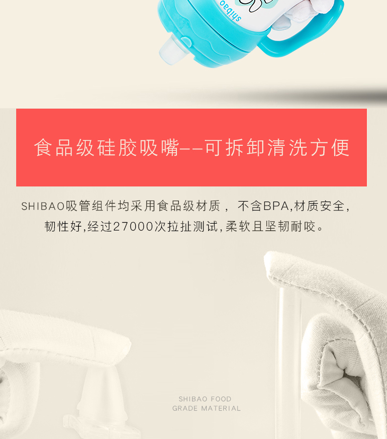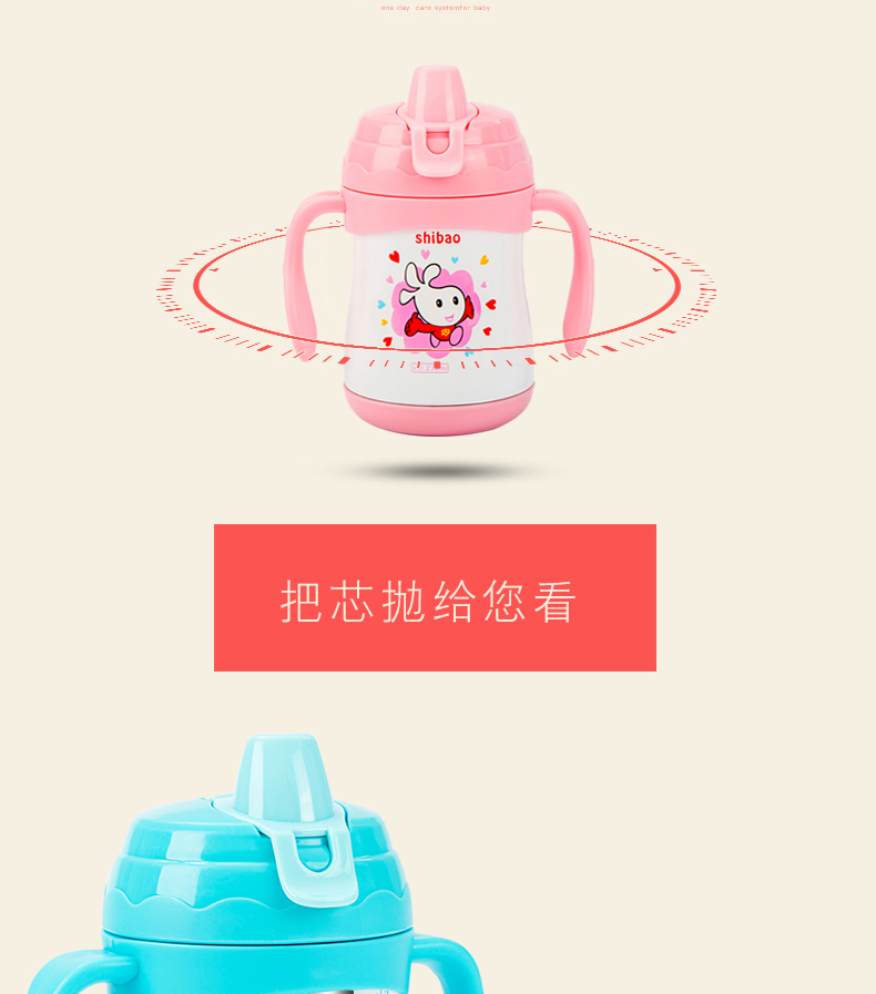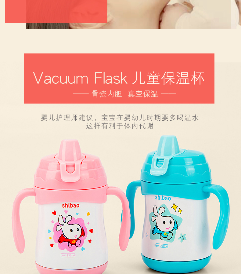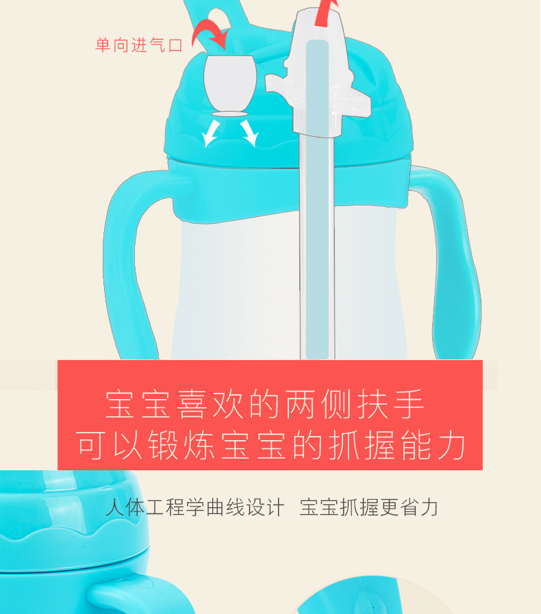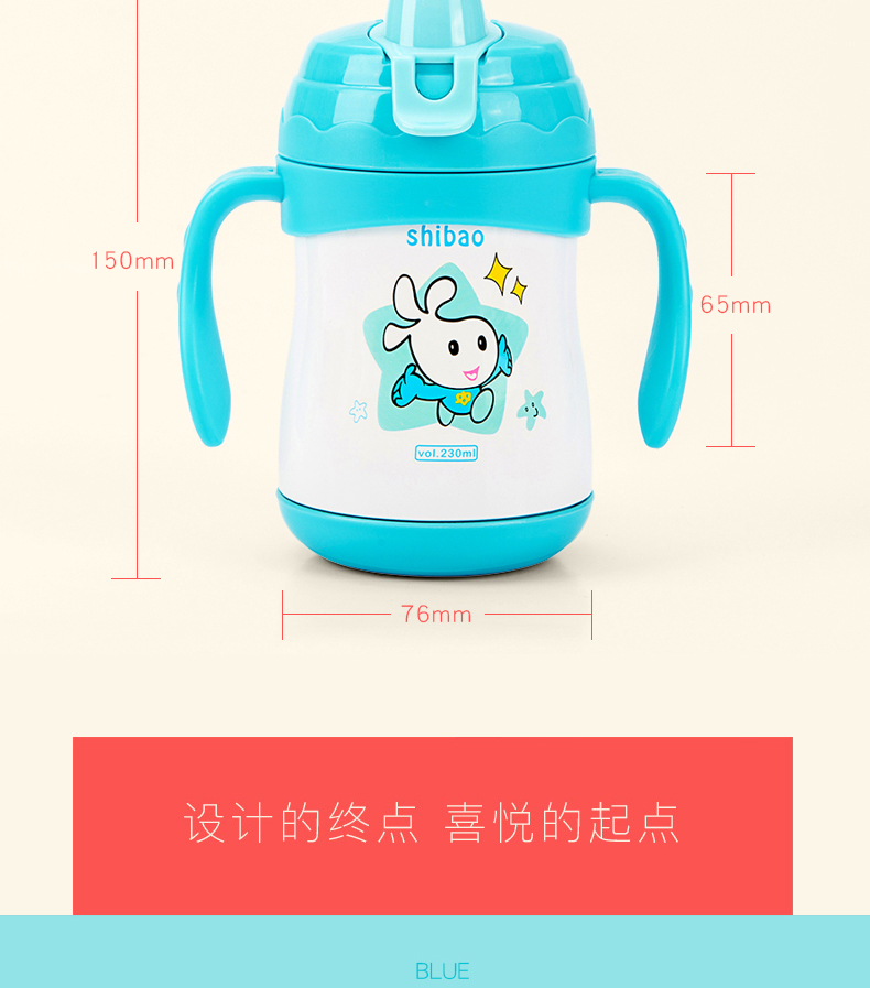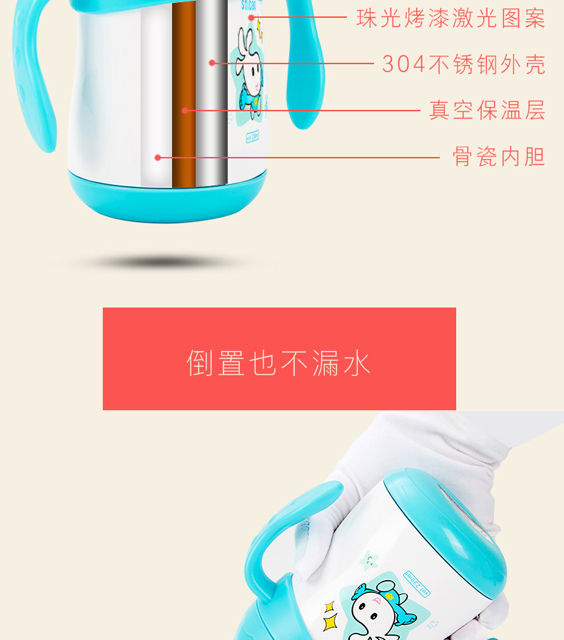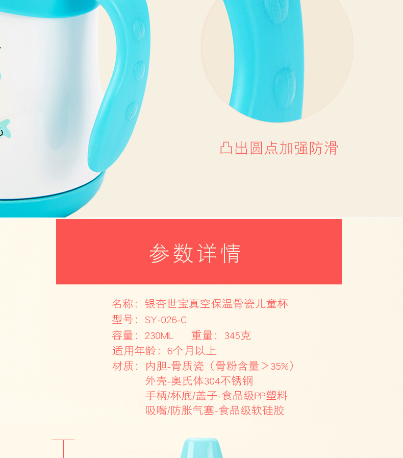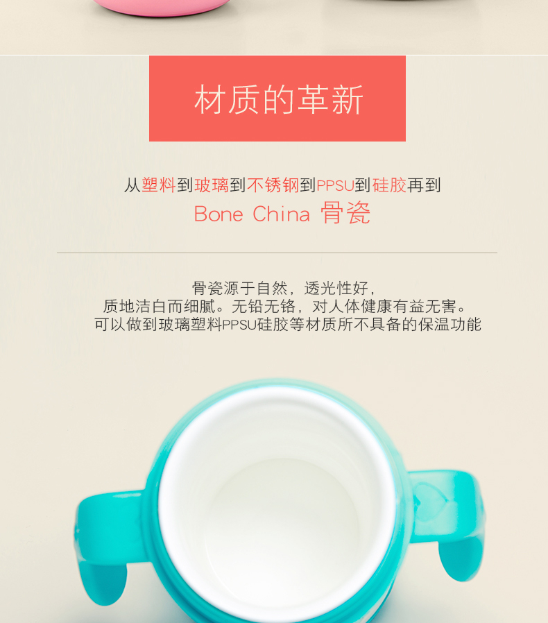 商品名称:宝宝学饮杯骨瓷内胆鸭嘴带手柄 230ml
