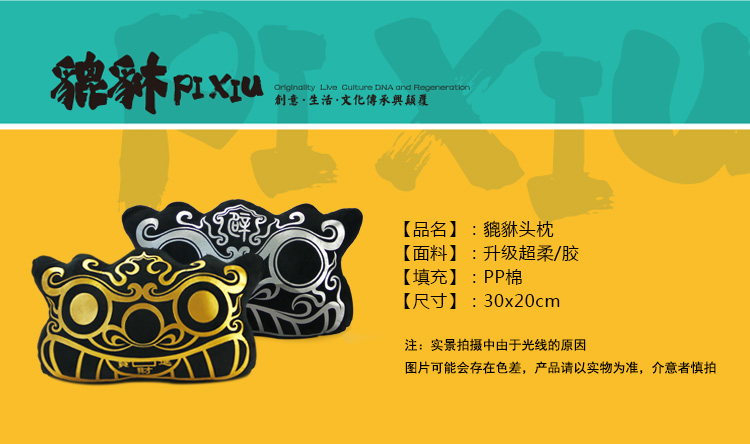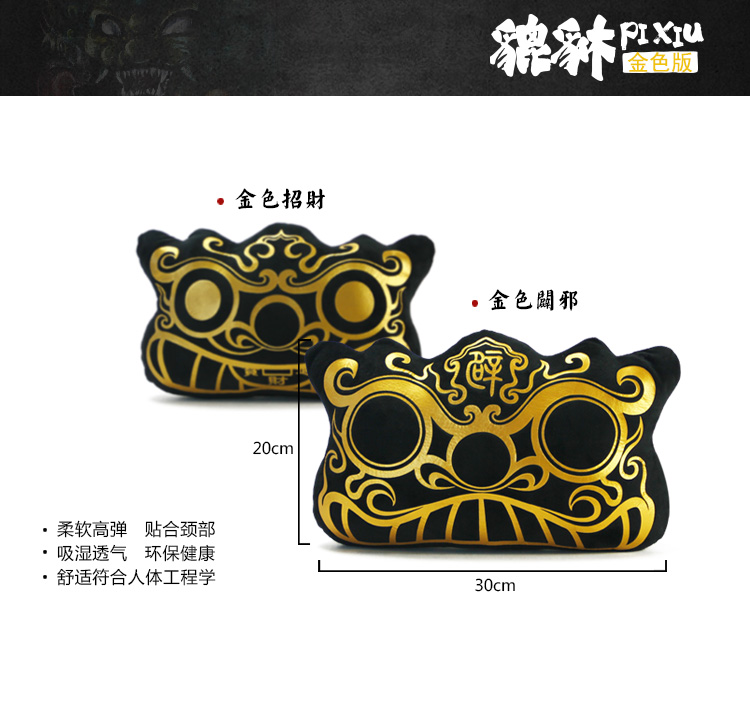 商品名称:创意中国风招财避邪貔貅头枕 汽车头枕 办公靠枕(金色)