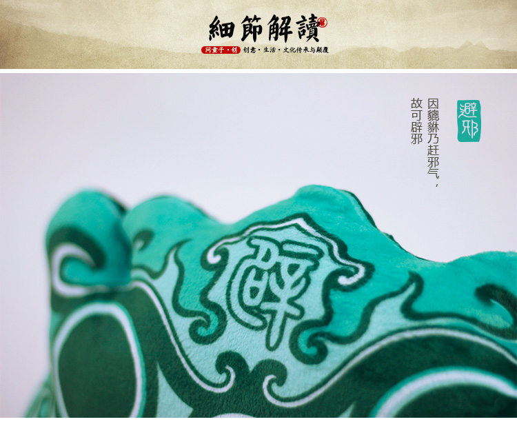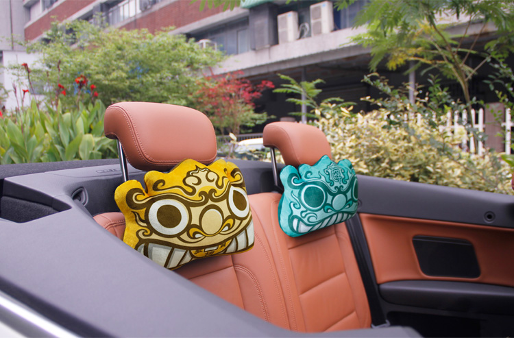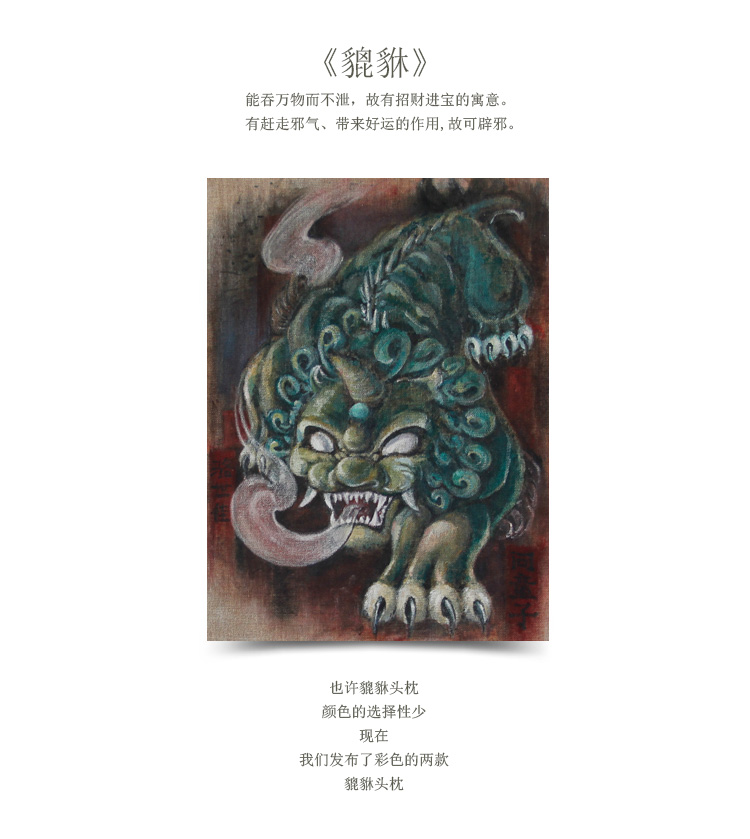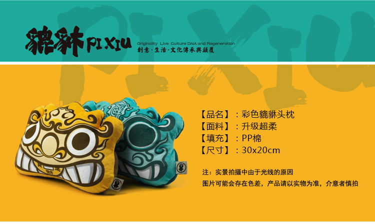 商品名称:创意中国风招财避邪貔貅头枕 汽车护颈枕 办公靠枕(彩色)