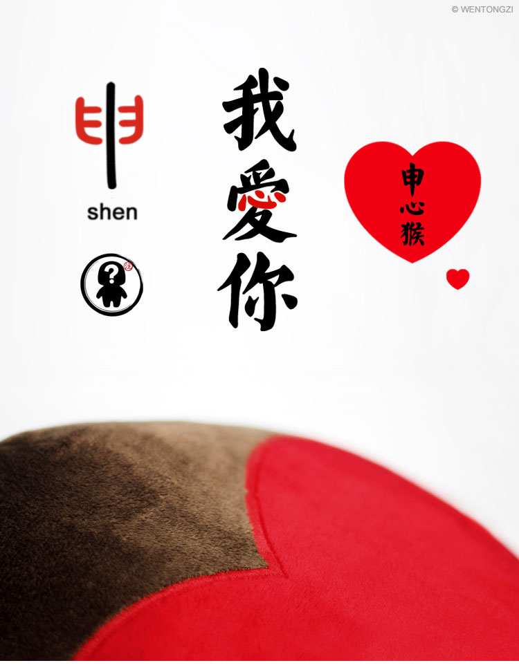 深情的猴子 创意可爱心形猴子公仔 - 小号