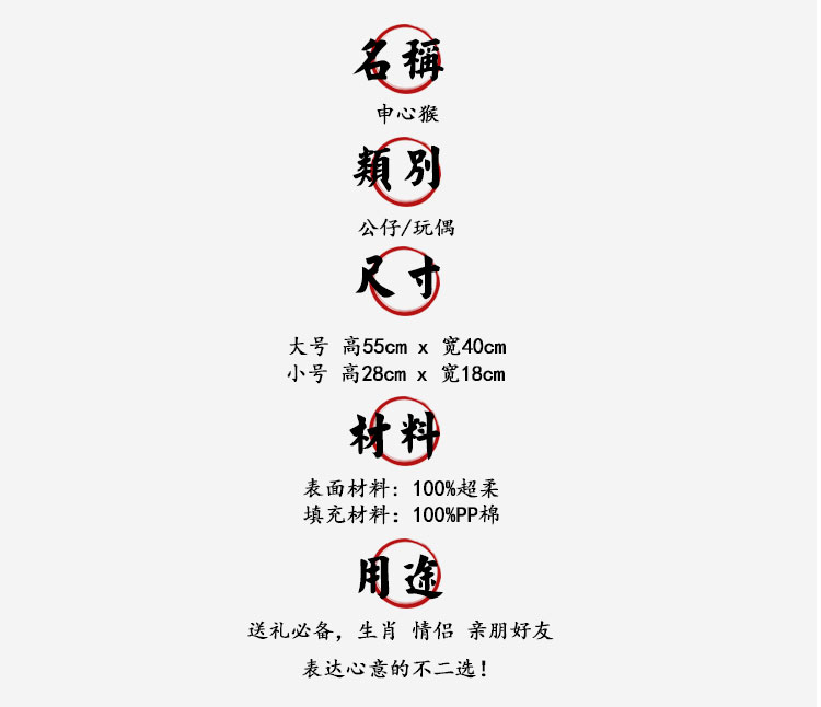 商品名称:深情的猴子 创意可爱心形猴子公仔 - 小号