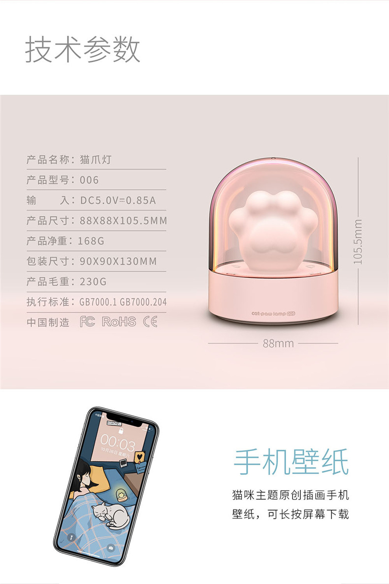商品名称:创意可爱猫爪音乐灯迷你USB小夜灯氛围灯 创意小礼品大全