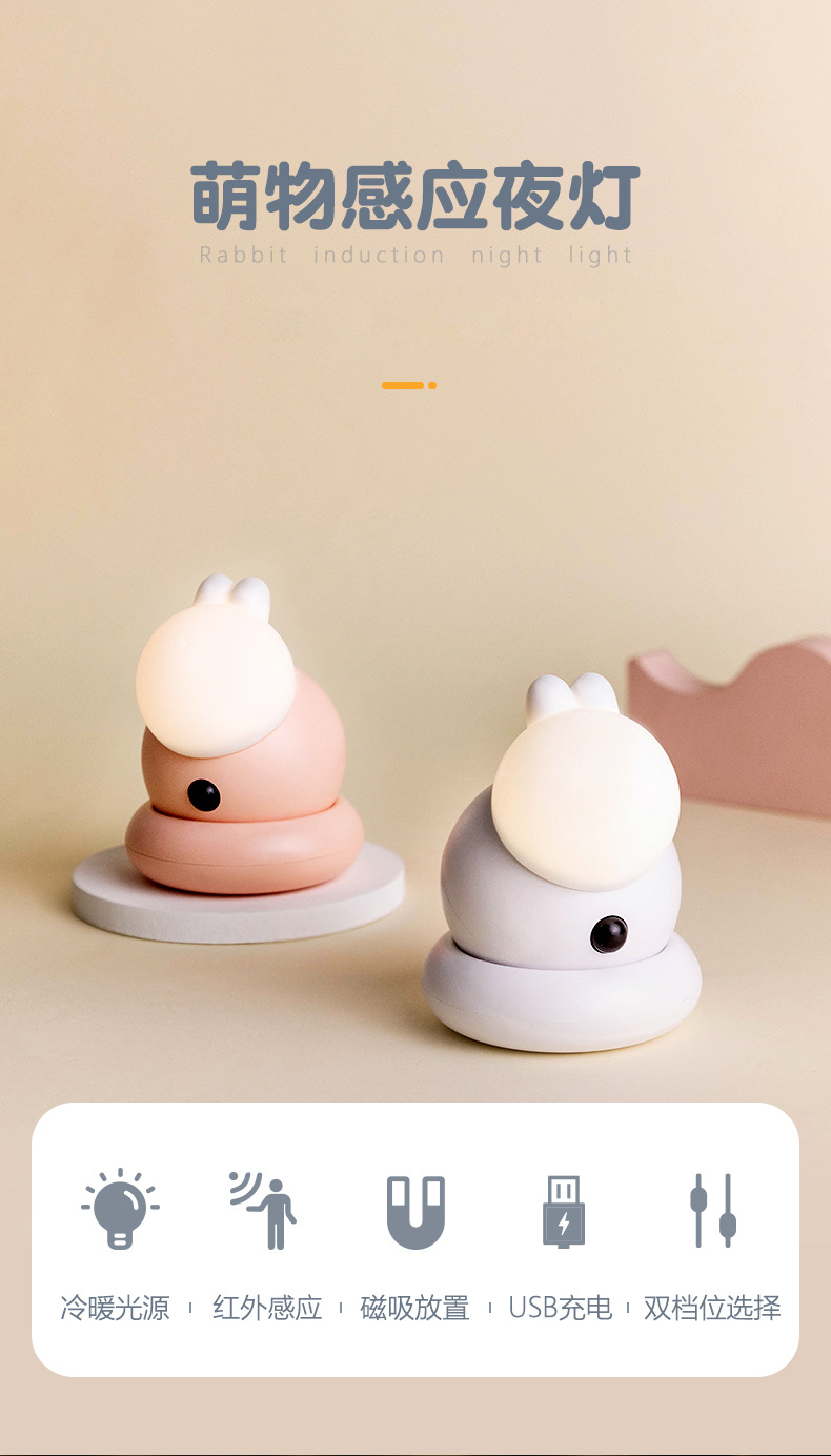 商品名称:萌物人体感应灯 萌兔led拍拍灯 橱柜小夜灯 墙壁感应走廊灯 创意小礼品 做活动送什么礼品实惠