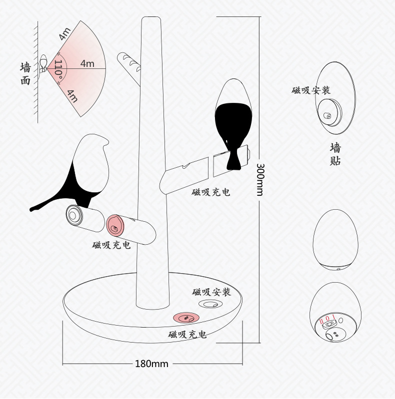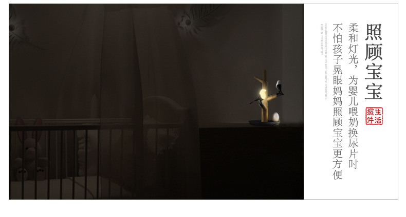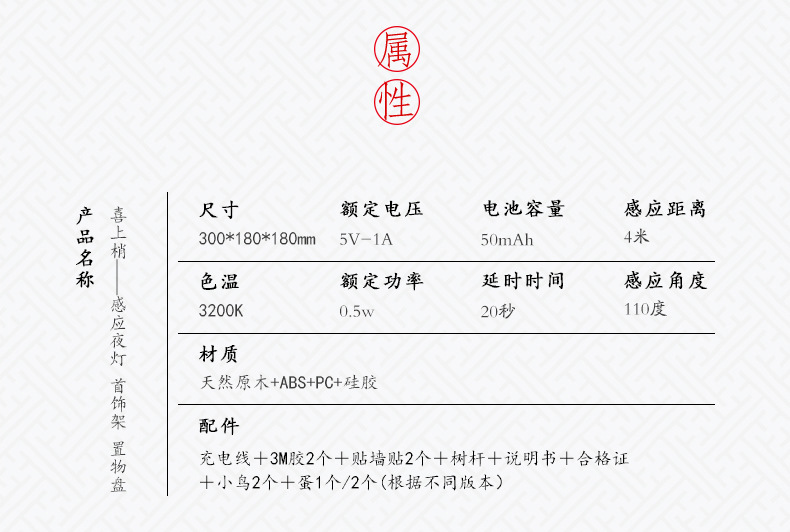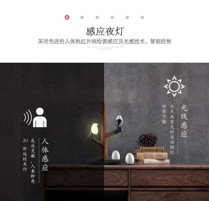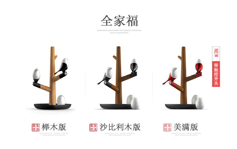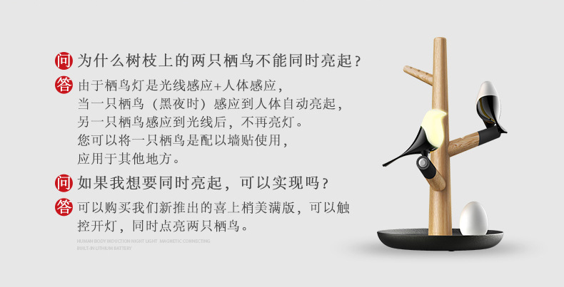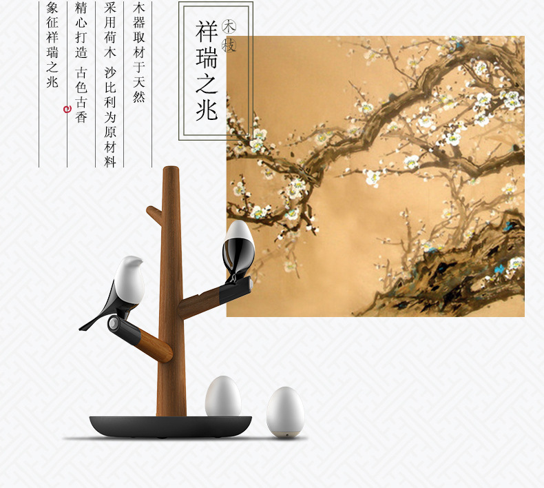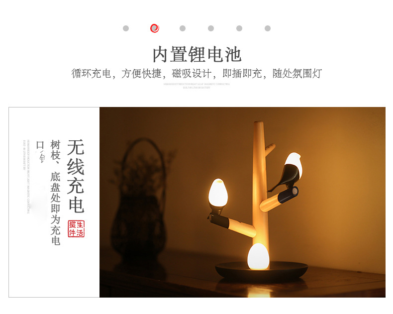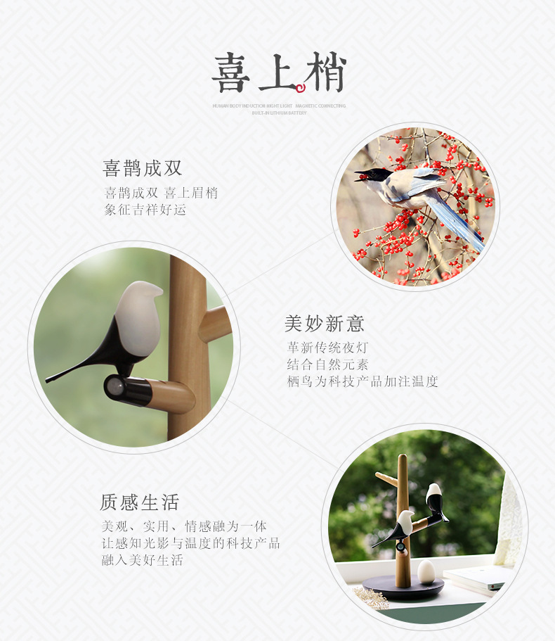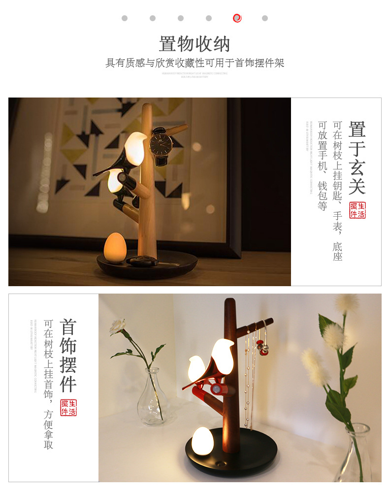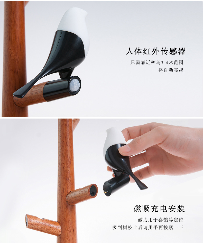 商品名称:喜上梢智能感应灯置物收纳摆件架光控小鸟树枝磁吸小夜灯 高级礼品