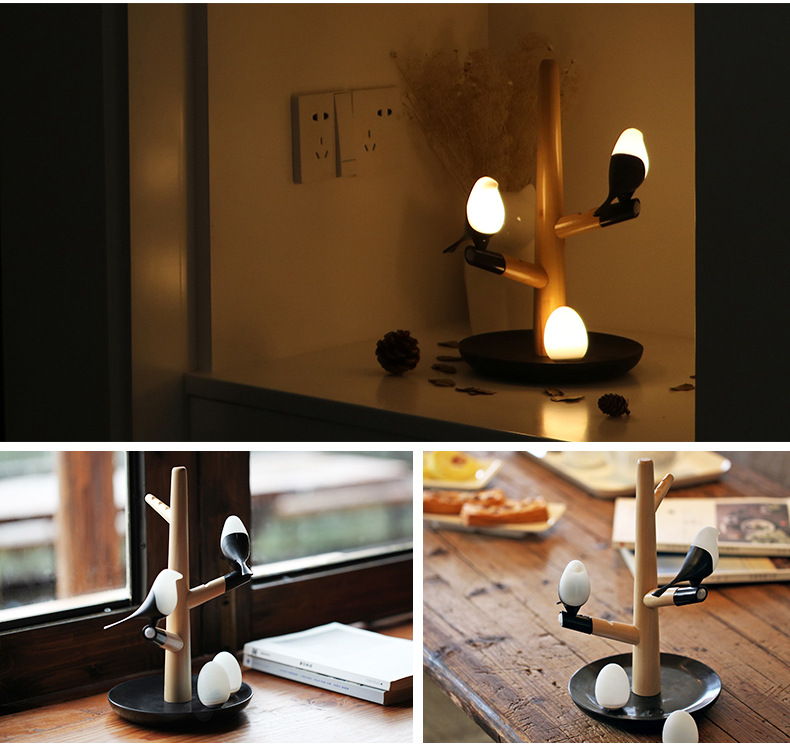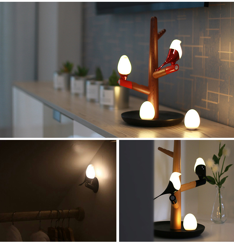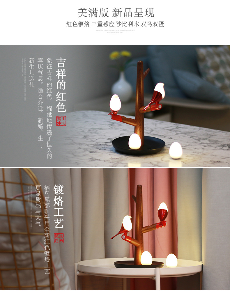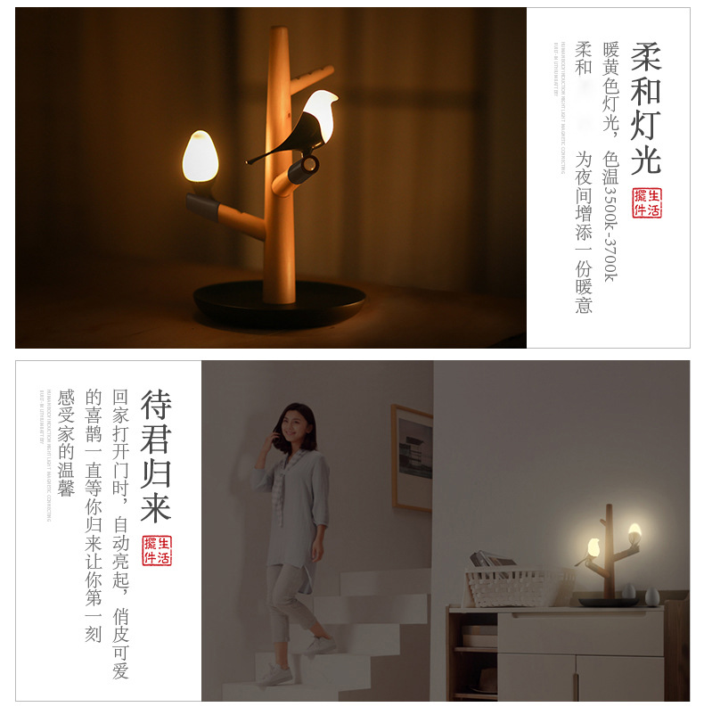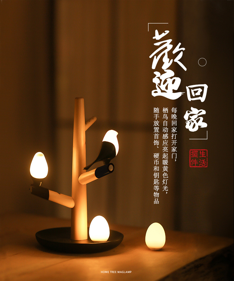 喜上梢智能感应灯置物收纳摆件架光控小鸟树枝磁吸小夜灯 高级礼品