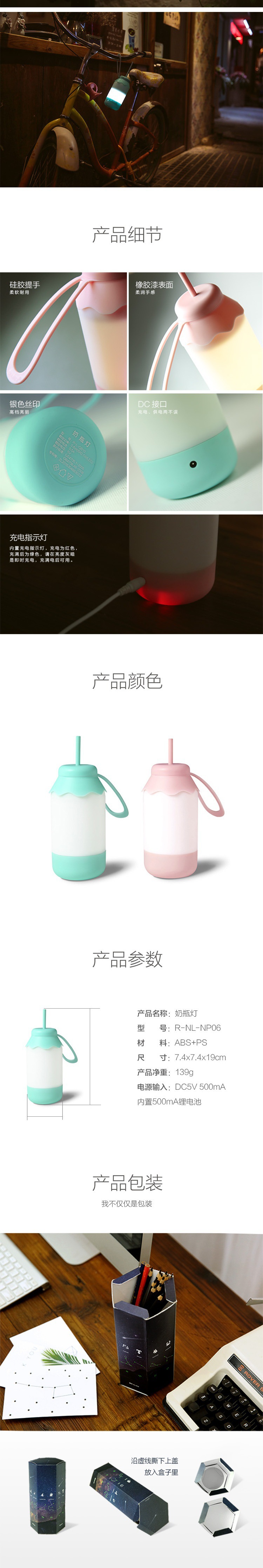 商品名称:【浪漫奶瓶灯】doulex 创意无极调光奶瓶灯 浪漫USB充电小夜灯 创意中秋小礼品