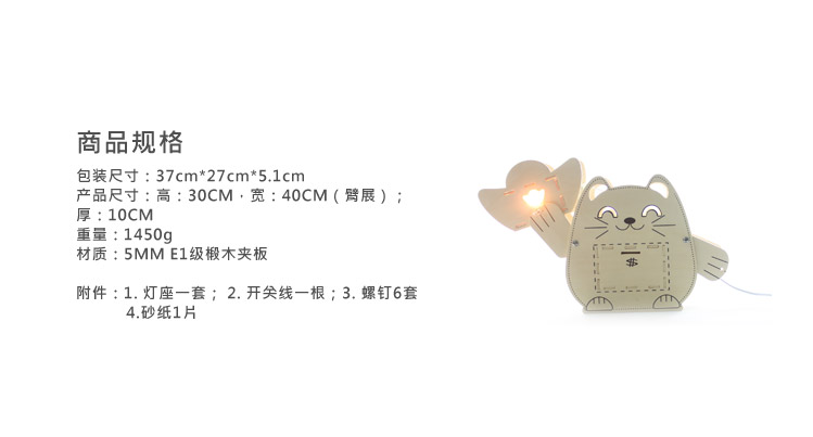 商品名称:DIY木质招财猫储蓄盒台灯