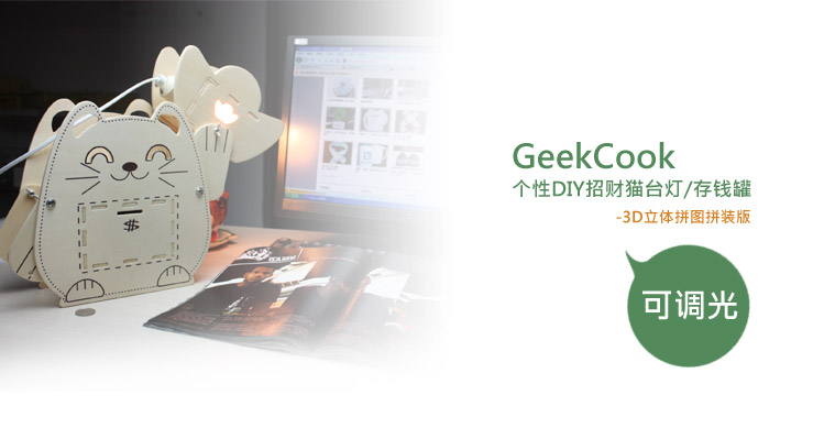 DIY木质招财猫储蓄盒台灯