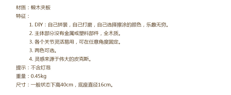 商品名称:DIY皮克斯创意木质台灯(调光型)
