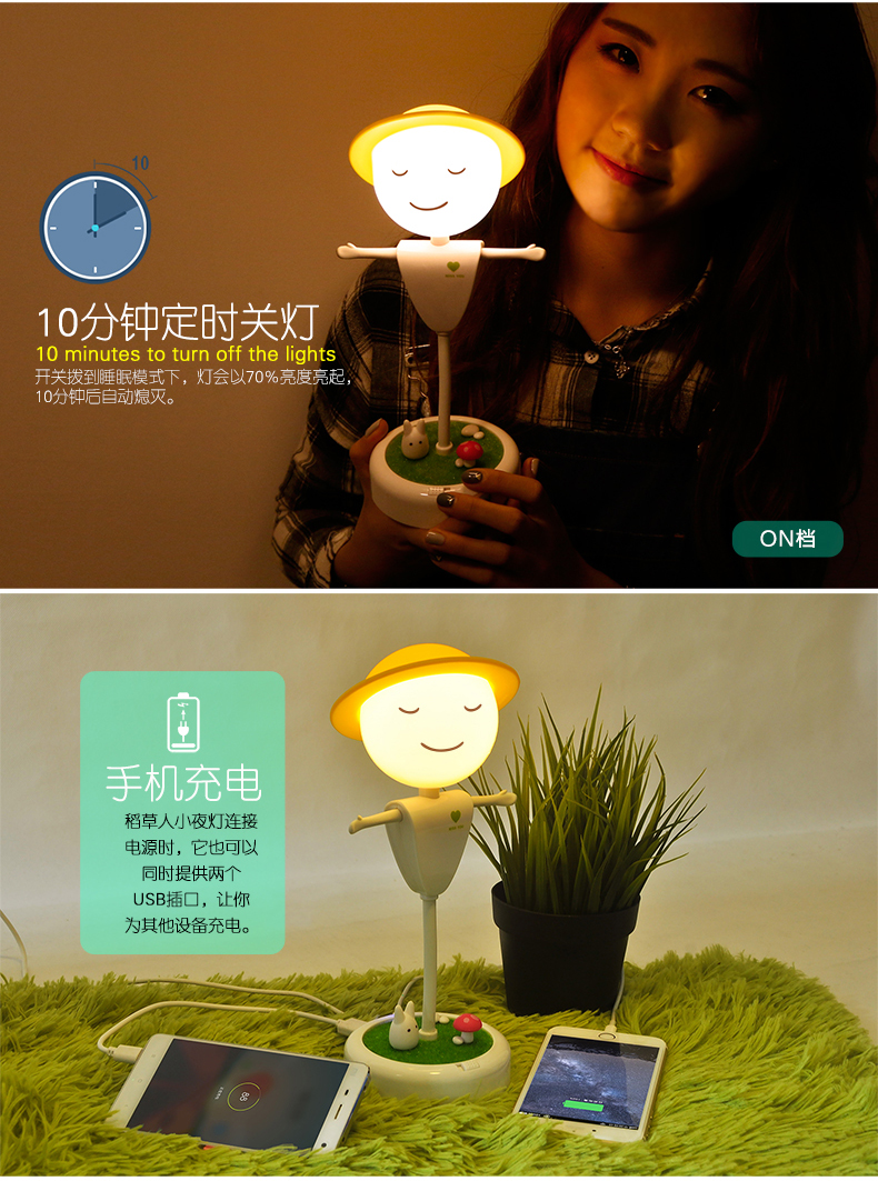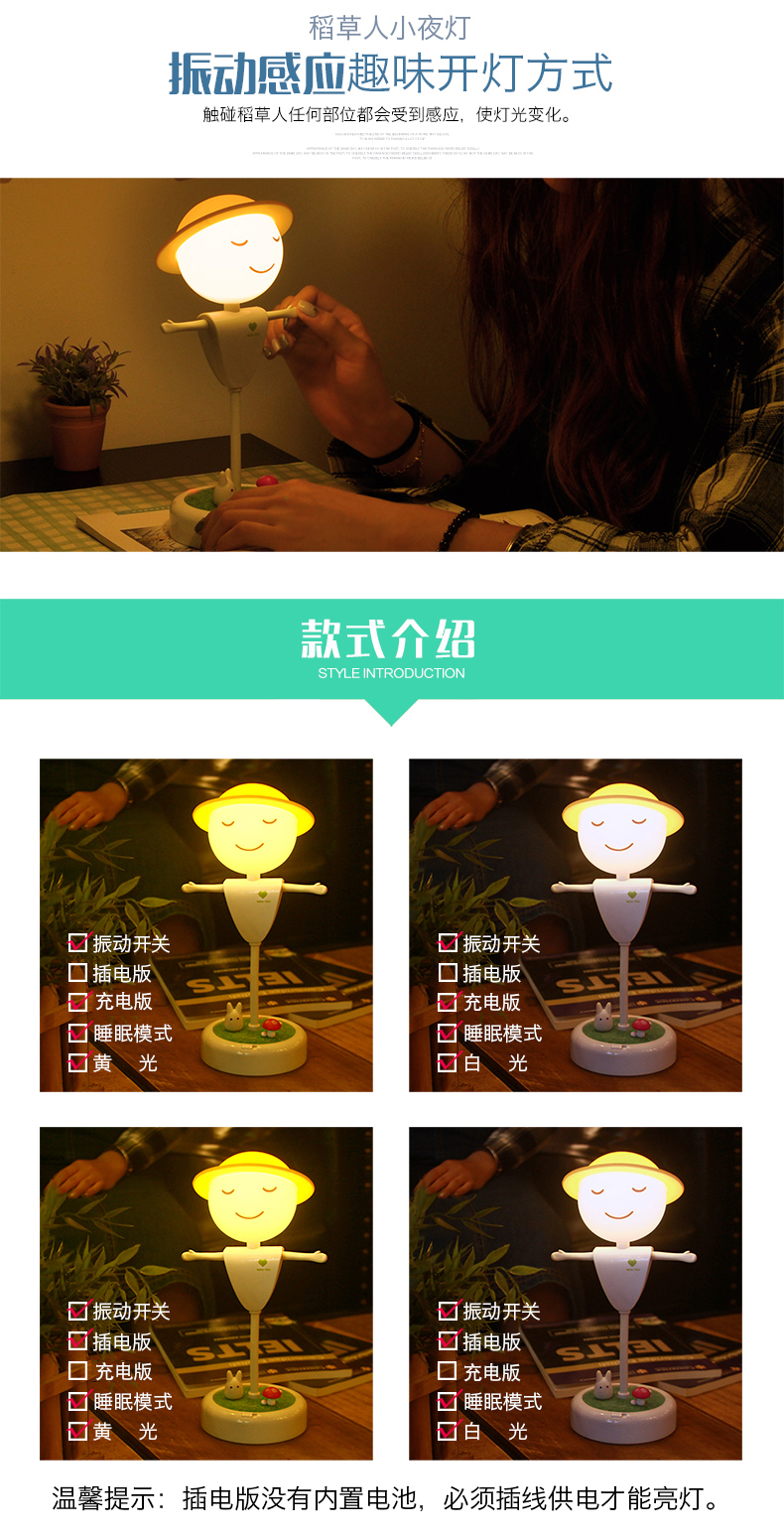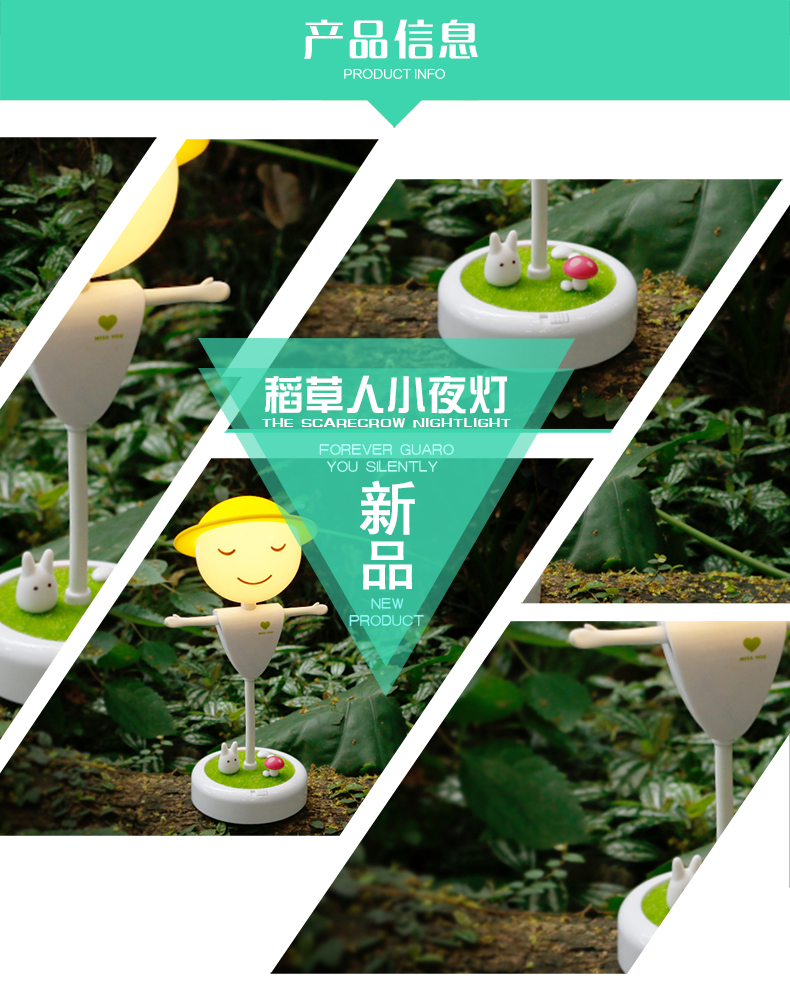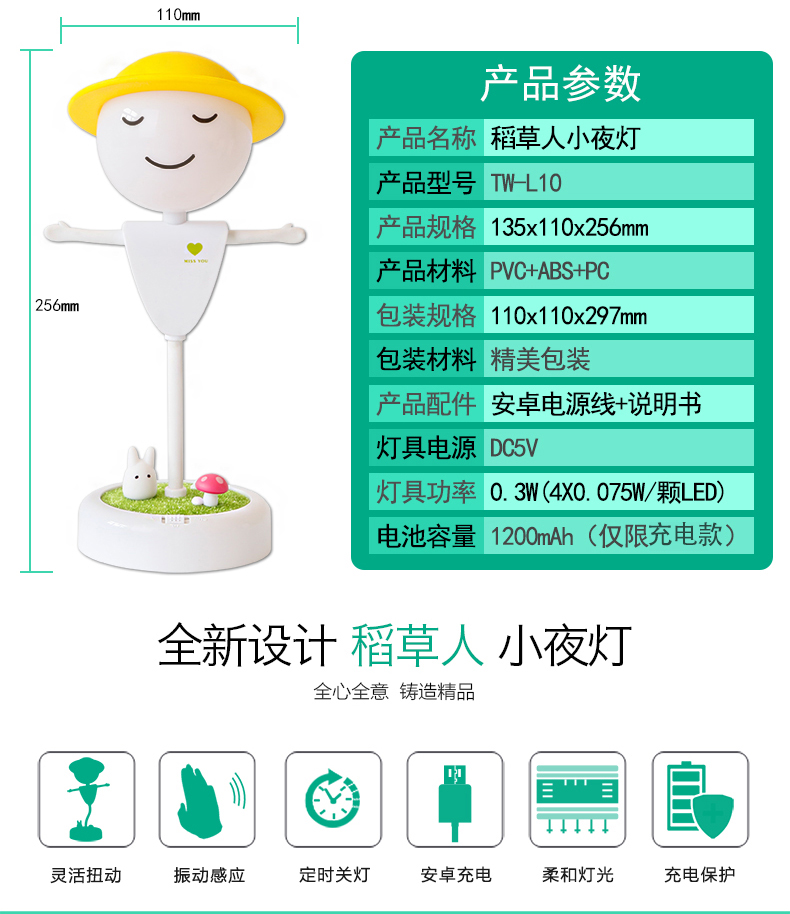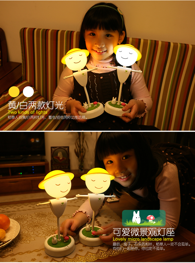 商品名称:稻草人小夜灯 创意LED桌面小夜灯(充电款)