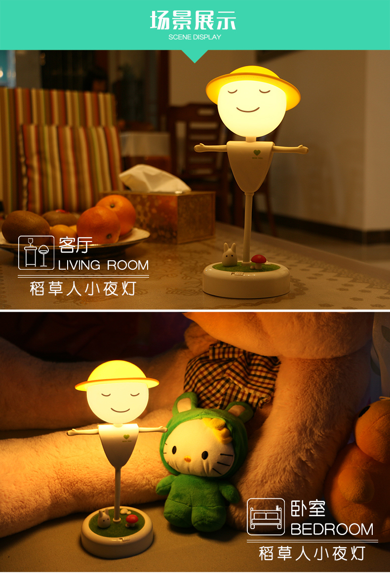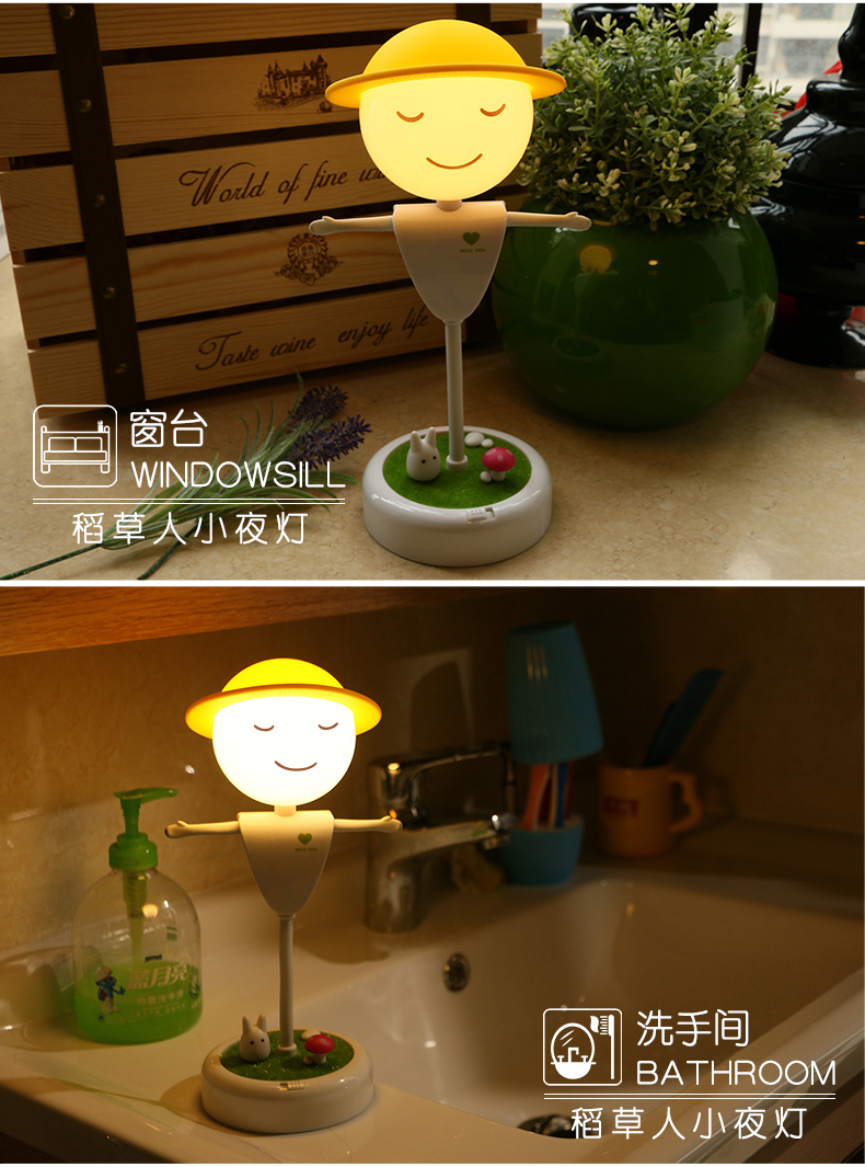 稻草人小夜灯 创意LED桌面小夜灯(充电款)