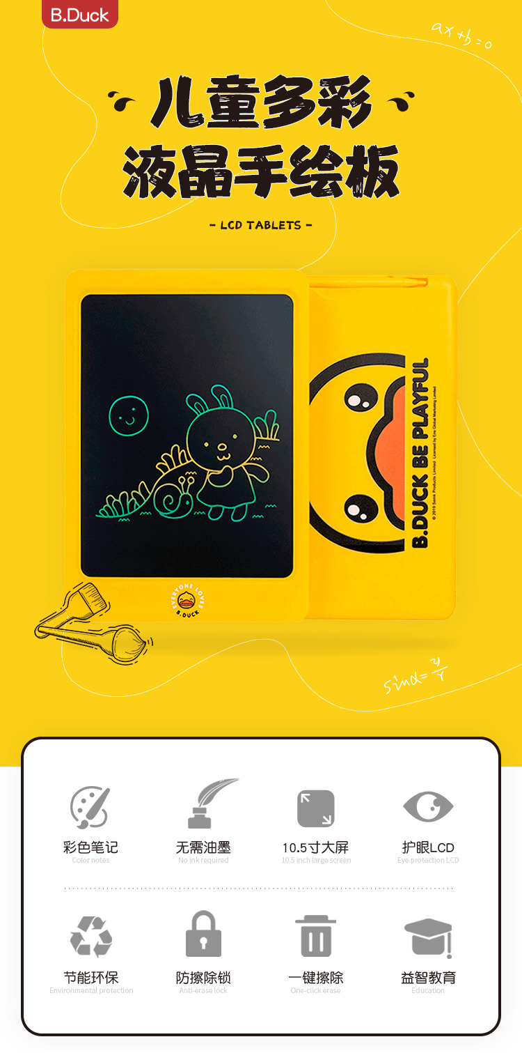 商品名称:B.Duck 小黄鸭儿童手写板 彩色儿童画板 8.5寸手绘板 彩色液晶手写板 有趣的儿童节礼物