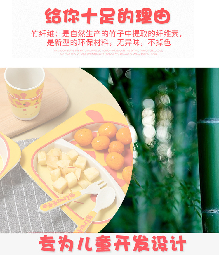 商品名称:森林王国 环保健康竹纤维儿童餐具礼盒套装5件套 儿童公益活动奖品 儿童节礼物