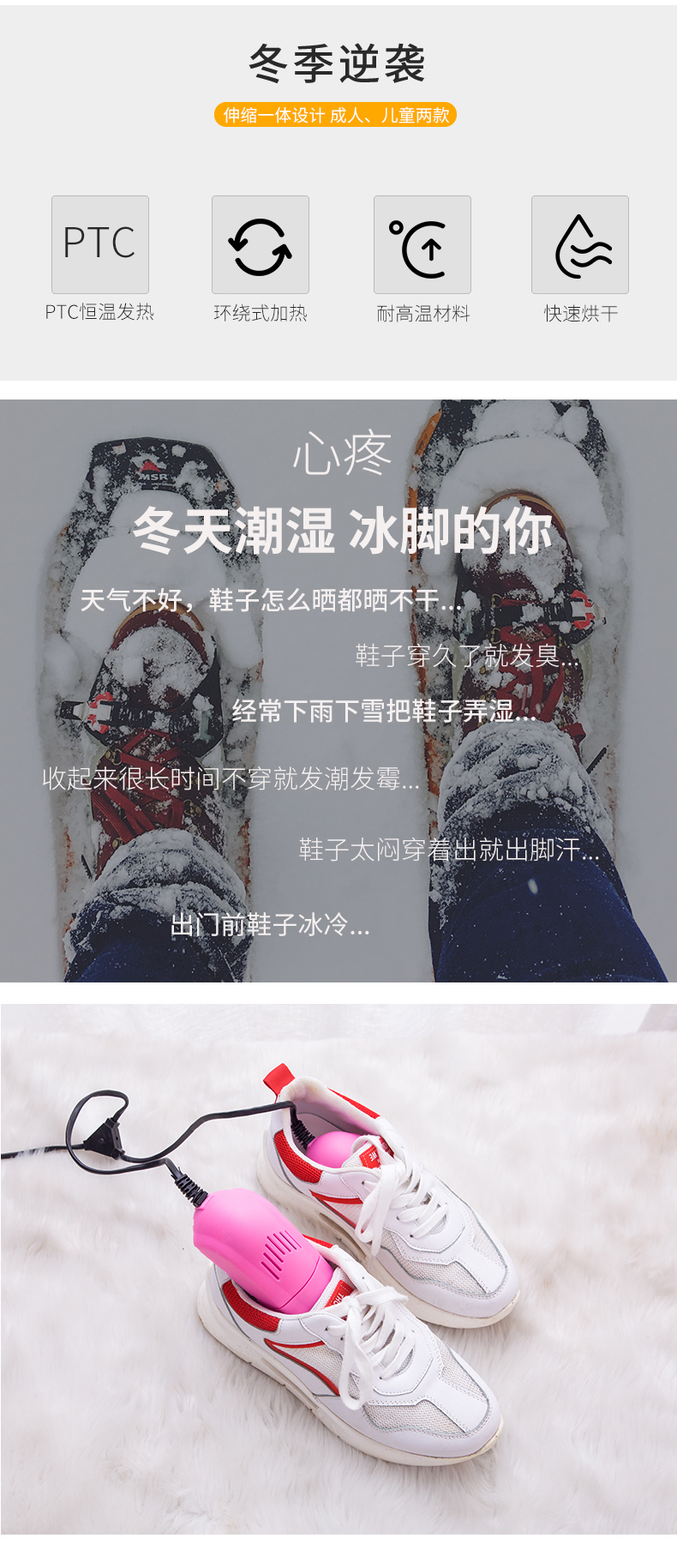 商品名称:不可伸缩款除臭杀菌烘鞋器 干鞋器--蓝色 秋冬季节 广告礼品