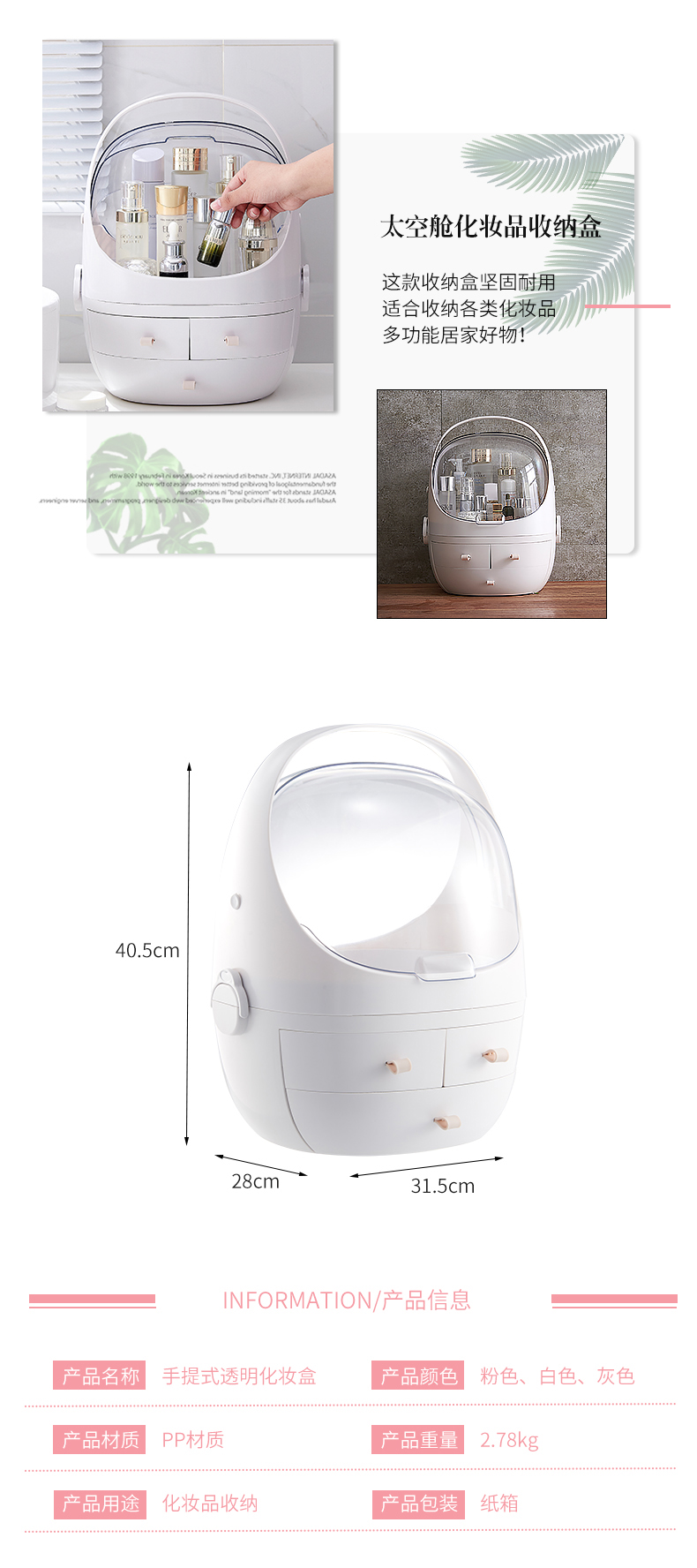 商品名称:太空舱造型可手提双开门带盖大小抽屉化妆品收纳盒--珍珠白(1952) 三八妇女节发什么好