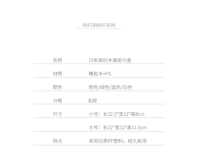 商品名称:北欧风马卡龙色抽纸盒 橡木盖纸巾抽纸巾盒(小号) 公司员工生日礼物