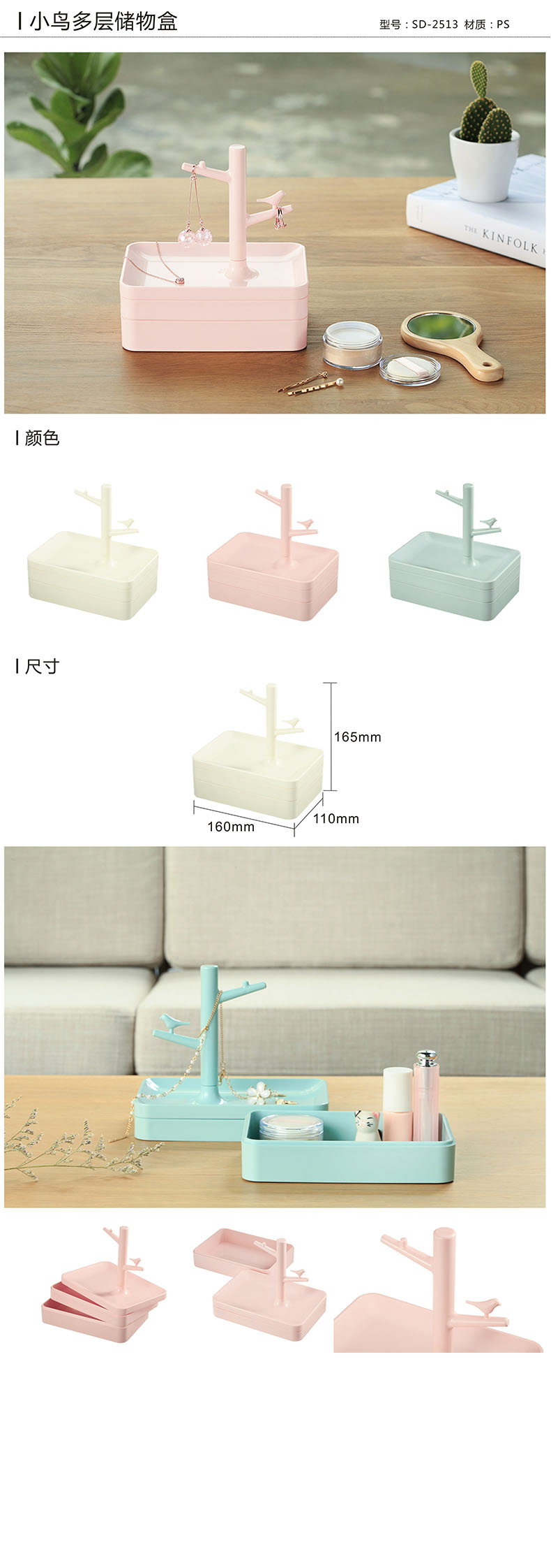 商品名称:【时代良品】创意小鸟多层储物盒 时尚装饰双层储物收纳盒 化妆品盒首饰盒 时尚礼品