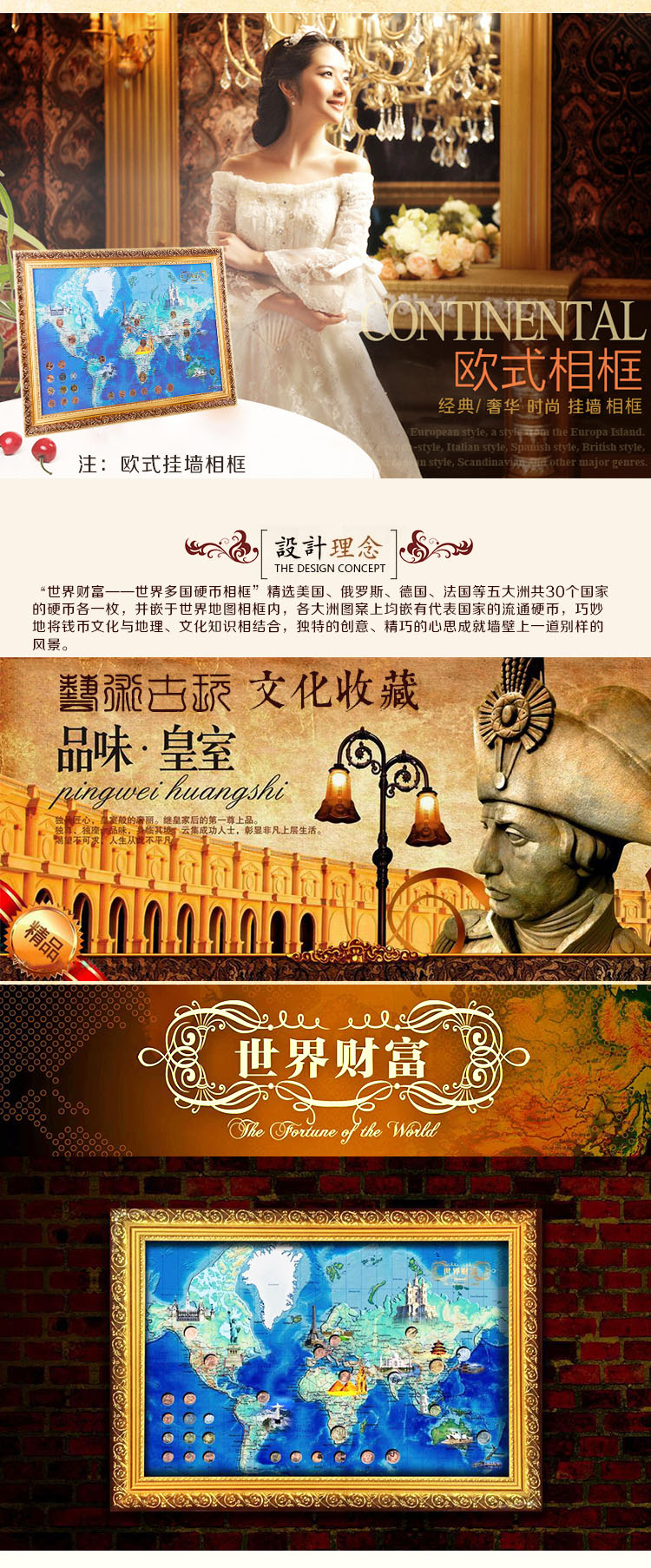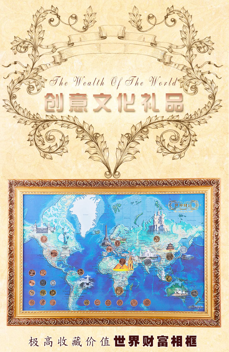 商品名称:【有钱途】世界财富地图——30枚世界多国硬币相框 外币壁挂送客户送领导