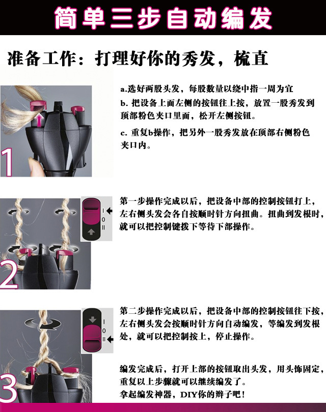 商品名称:快速自动编发造型器 麻花辫器 创意女性小礼品