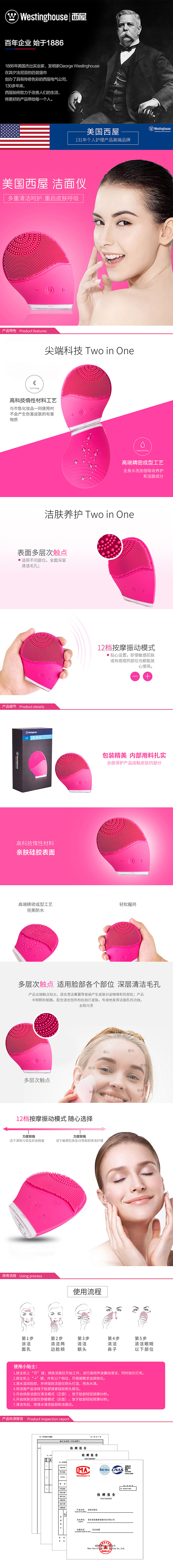 商品名称:美国西屋 洗脸神器 硅胶电动洁面仪 充电式洗脸仪 按摩洁面刷 洗脸器