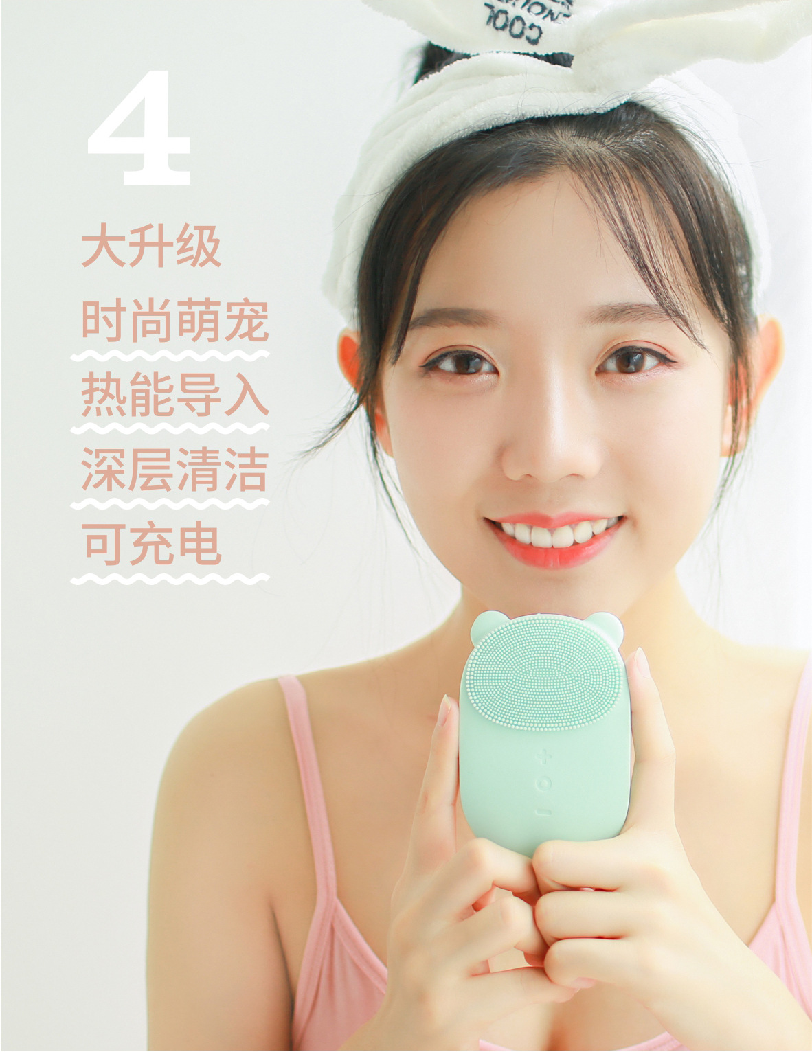 商品名称:小萌熊按摩洁面仪 电动硅胶脸部清洁器 防水美容仪 声波电动美容导入仪 美容仪小礼品