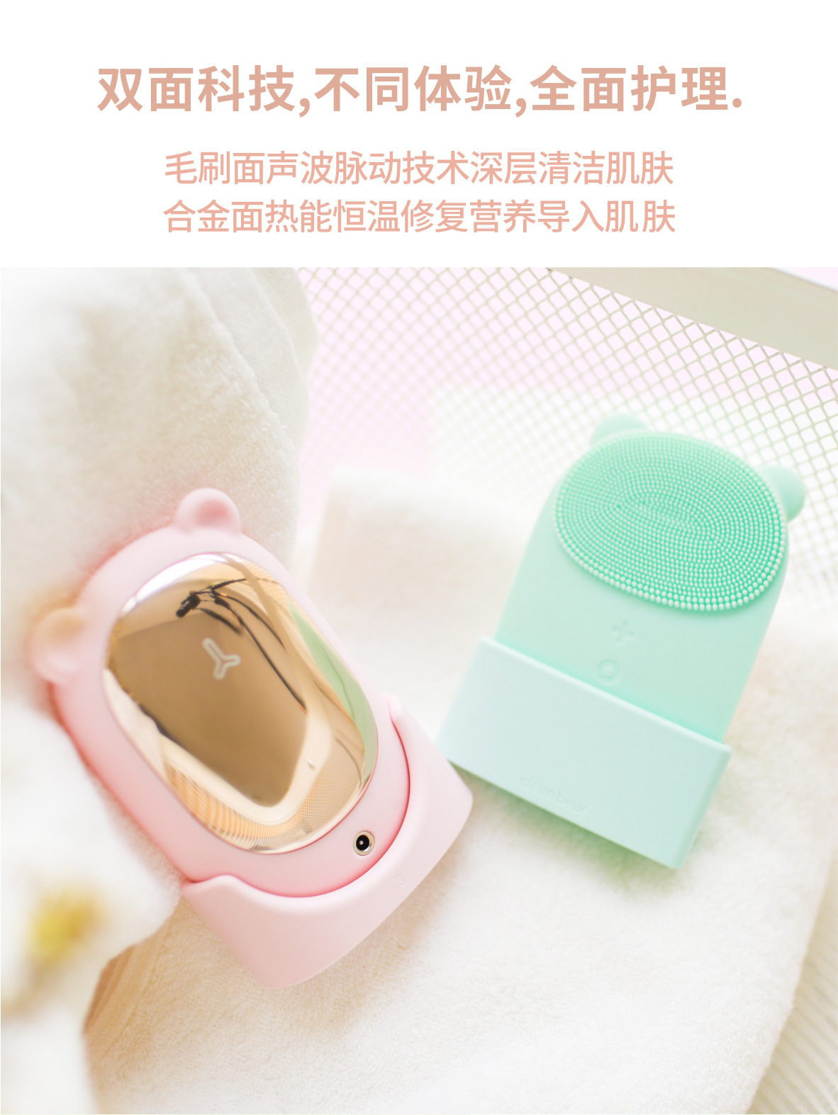 小萌熊按摩洁面仪 电动硅胶脸部清洁器 防水美容仪 声波电动美容导入仪 美容仪小礼品