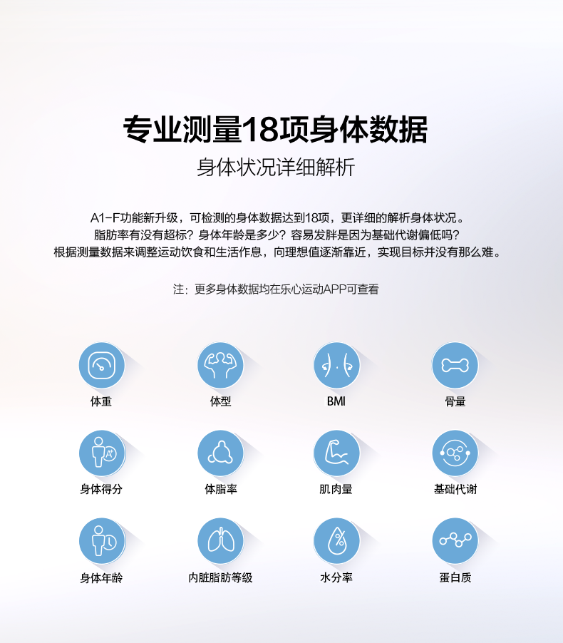 乐心(LIFESENSE)智能电子秤 四核传感器体脂秤 蓝牙体重秤 精准健康秤A1-F