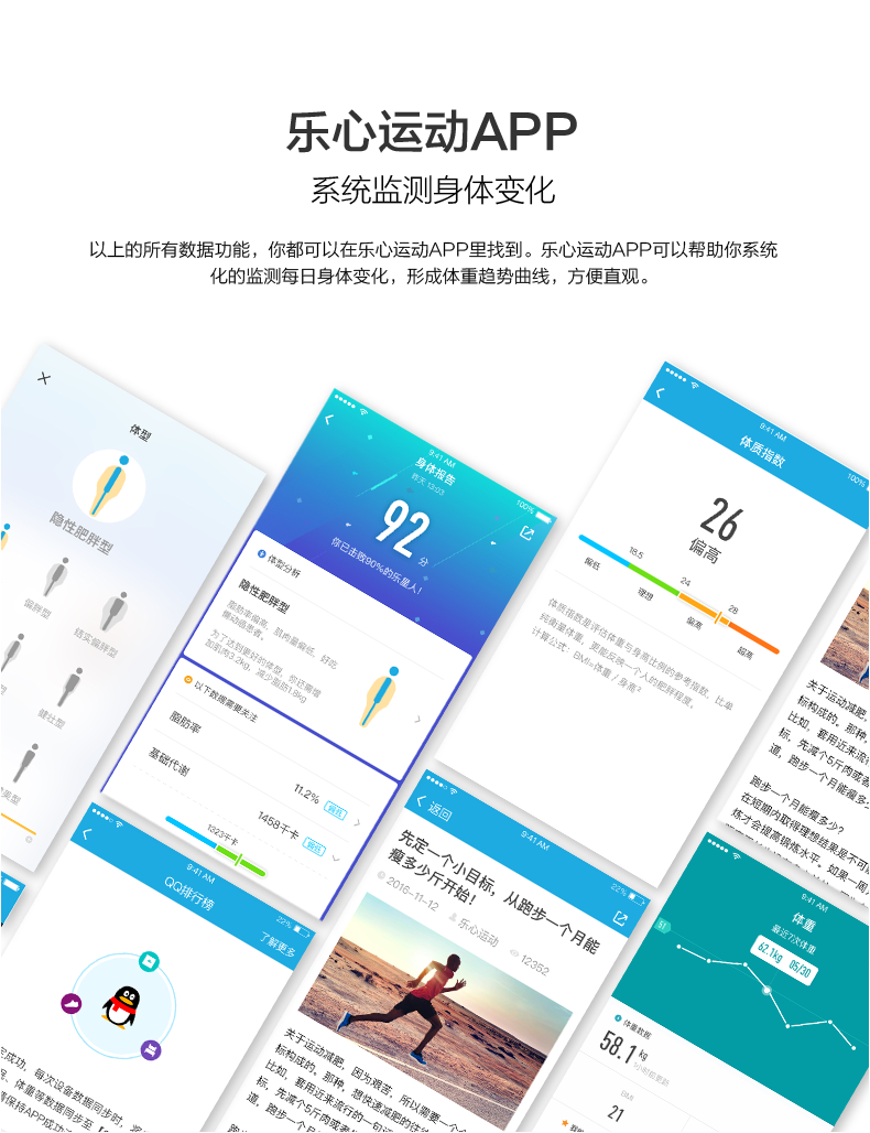 商品名称:乐心(LIFESENSE)智能电子秤 四核传感器体脂秤 蓝牙体重秤 精准健康秤A1-F