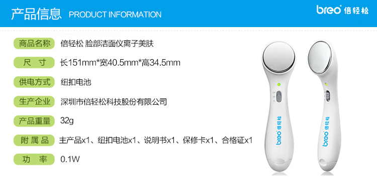 商品名称:倍轻松(breo) 离子美肤仪 脸部护理按摩器 美容仪 导入仪 清洁仪 妇女节礼品 活动奖品
