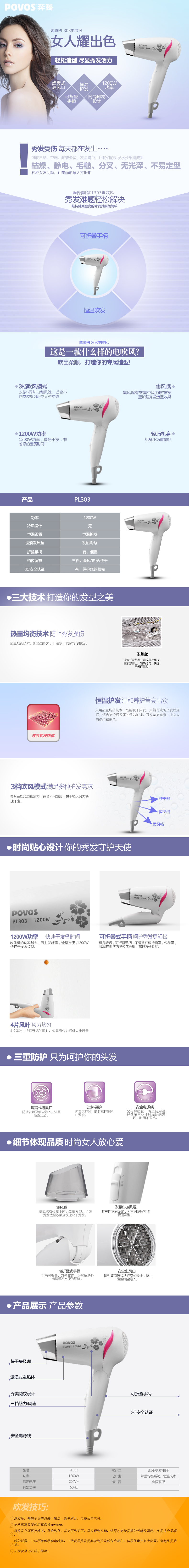 商品名称:奔腾(POVOS)可折叠旅行利器 电吹风 PL303 中国礼品商城