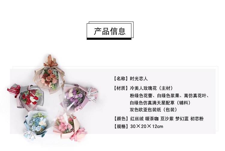 商品名称:【时光】创意冷美人玫瑰花花束 香皂花礼盒 女神节礼品
