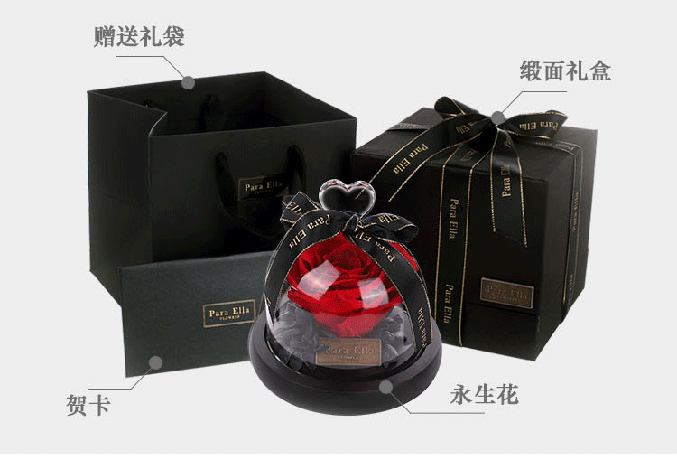 商品名称:永生玫瑰花 玻璃罩干花花束礼盒 高档的创意摆件礼品