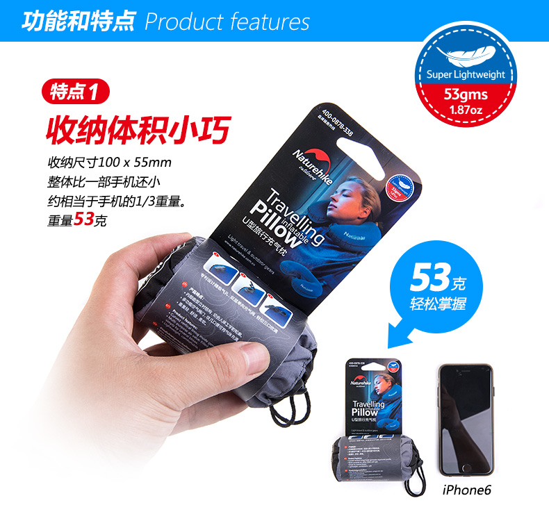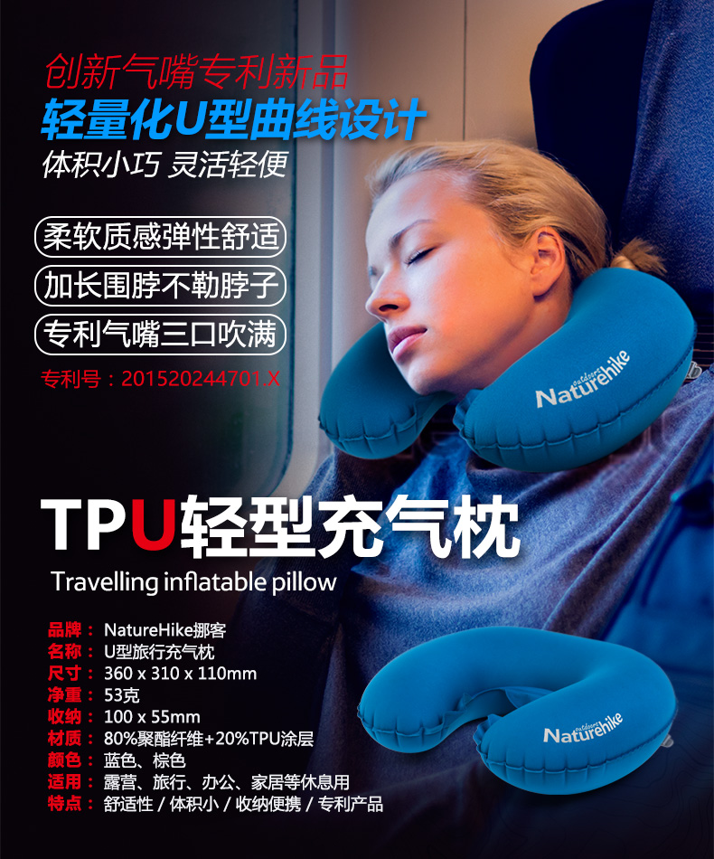 商品名称:Naturehike 旅行U型充气枕头 飞机靠枕 办公室U形午睡枕 超轻脖枕 企业员工福利