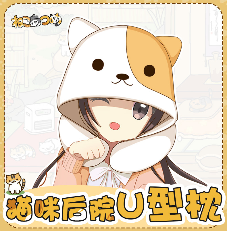 【喵咪后院】超萌卡通猫咪U型枕 办公室午休枕 遮光连帽午睡枕 二次元游戏周边礼品