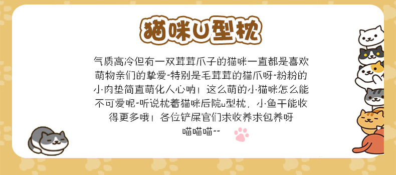 商品名称:【喵咪后院】超萌卡通猫咪U型枕 办公室午休枕 遮光连帽午睡枕 二次元游戏周边礼品
