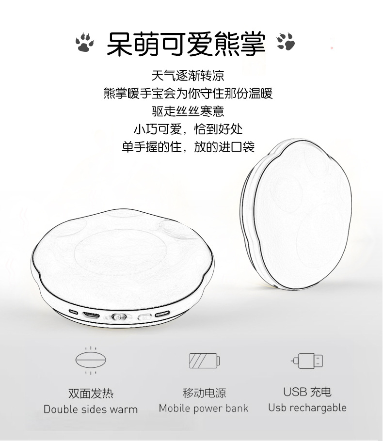 商品名称:可爱USB熊掌暖手宝 创意电暖宝充电宝二合一 冬天应季小礼品