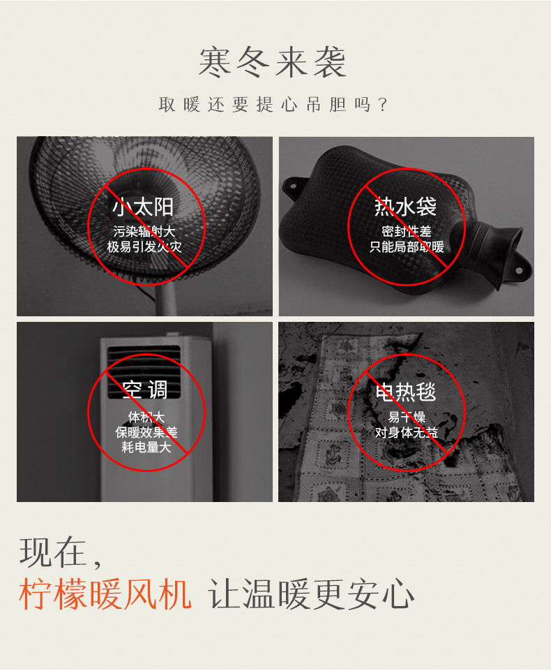 商品名称:柠檬桌面迷你暖风机 办公家用摇头低噪音取暖器 元旦创意礼品