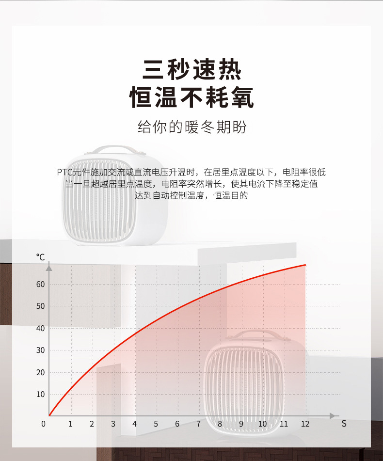 商品名称:SMART PTC HEATER 小V智能暖风机 迷你智能取暖器 冬季礼品定制