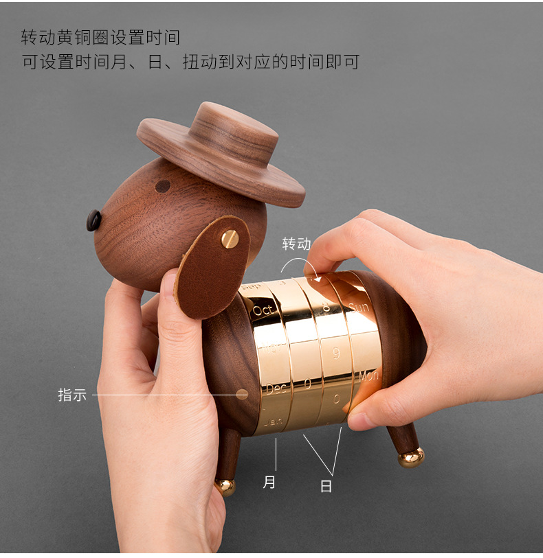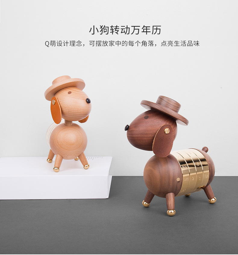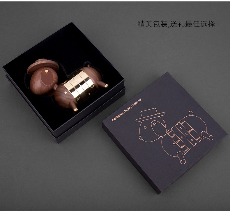 商品名称:MUSOR 黑胡桃绅士狗日历木质办公室桌面台历日历摆件 单位工会活动奖品
