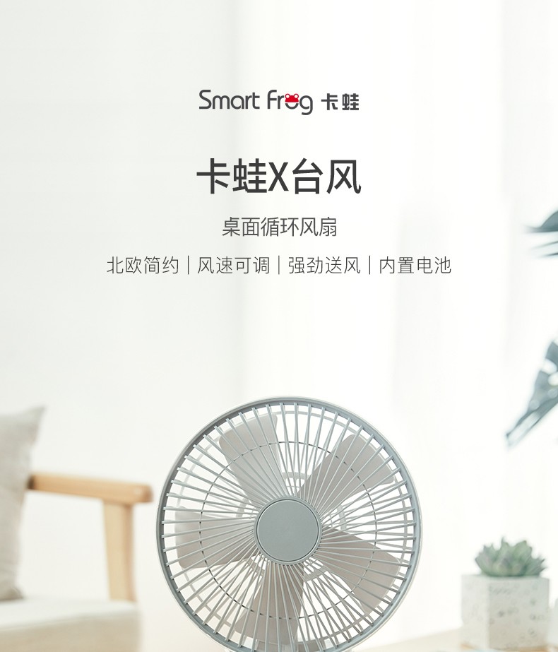 商品名称:Smart Frog 北欧简约小台扇 2020iF设计奖 USB充电空气循环风扇 活动奖品