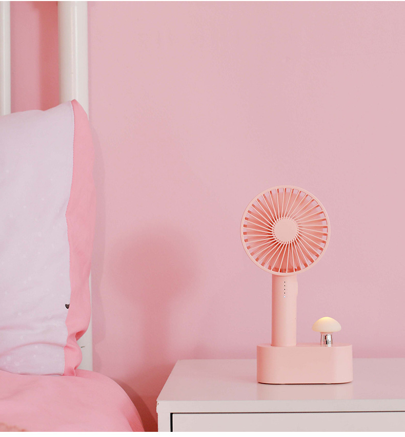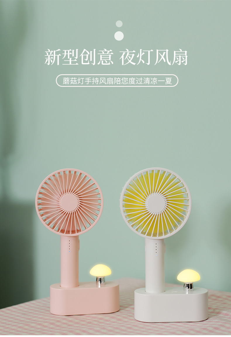 商品名称:蘑菇灯带底座手持风扇 创意夜灯风扇户外居家办公风扇 实用又方便携带的礼品