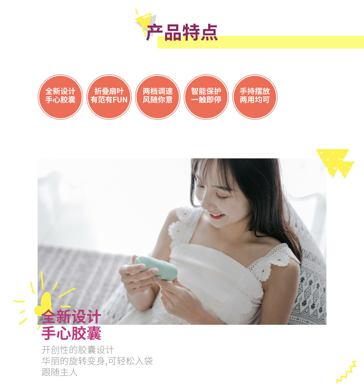商品名称:胶囊手持风扇卡通折叠风扇 智能保护一触即停 员工活动有哪些小礼品