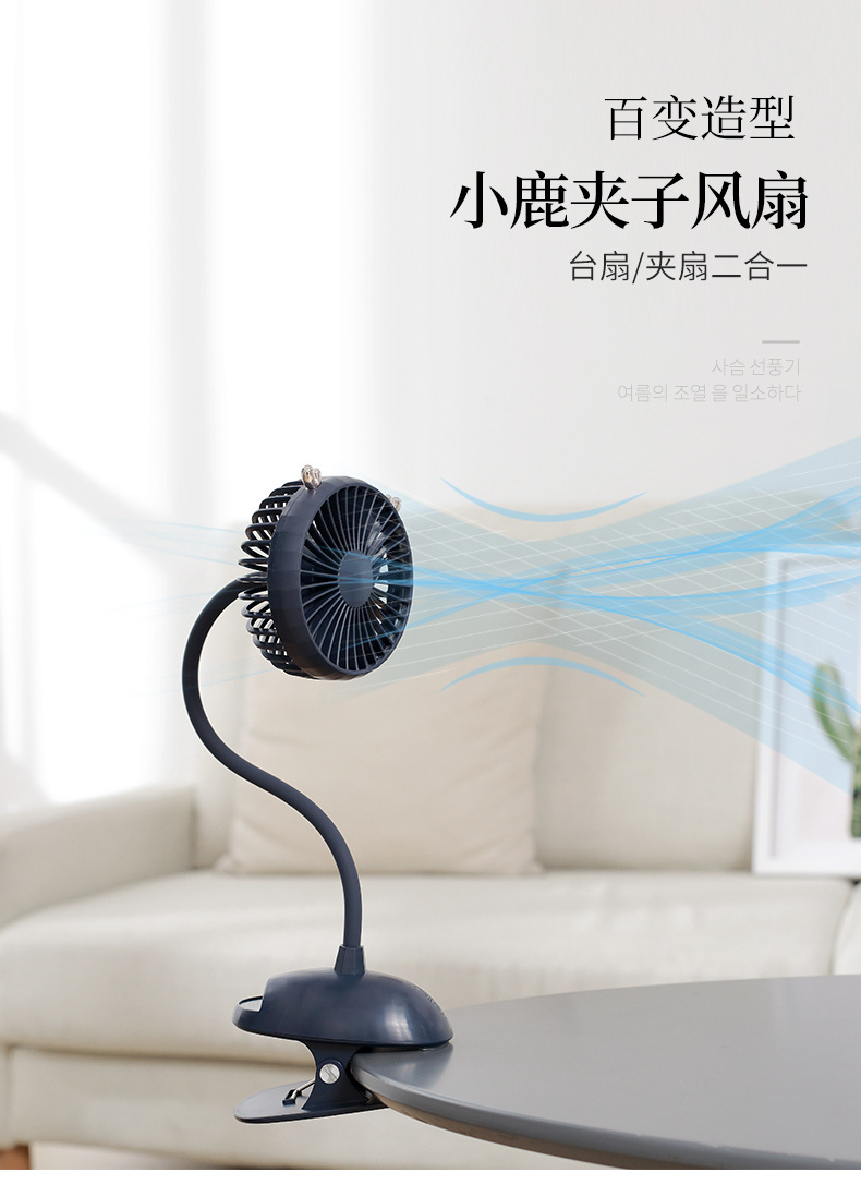 小鹿夹子风扇 台扇夹扇二合一桌面充电风扇 夏日公司生日礼物